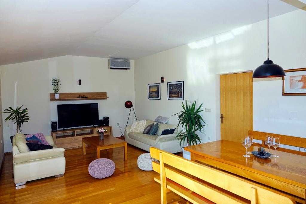 L'appartement Jurica est situé dans un quartier calme de la ville, dans le grenier d'une maison familiale, à 450 m de la plage et à 10 minutes à pied du centre-ville. Il se compose de trois chambres, 2 salles de bains, cuisine et salle à manger. Il est orné d'une grande terrasse et de deux balcons avec de belles vues panoramiques sur la mer et les îles et la montagne Biokovo. Idéal pour couples ou familles avec enfants. Il y a une épicerie à proximité, un restaurant à 300 mètres. Pendant votre séjour, les hôtes sont à votre service pour des informations plus détaillées, sur les excursions, la location de bateaux, le service de taxi, la location de vélos ...