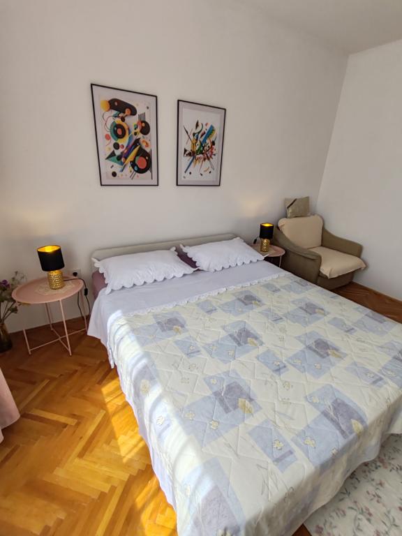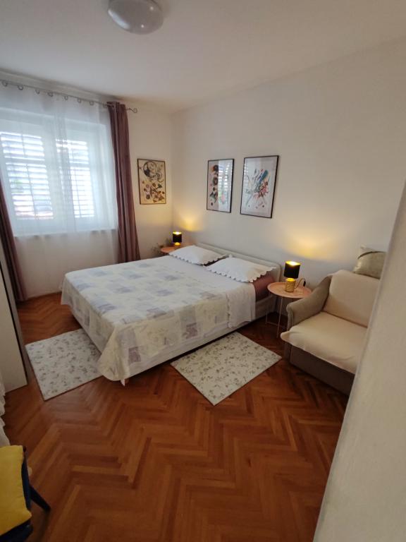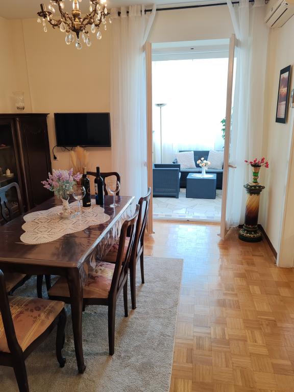 L'Apartment Nostalgia est un appartement spacieux pour 6 personnes avec vue sur la mer. Il est situé dans un emplacement attrayant à proximité de l'hôtel Dalmacija et à seulement 40 mètres de la plage principale de la ville. L'appartement est décoré dans un style rétro et se compose de 3 chambres, d'un salon séparé avec TV, d'une salle à manger séparée avec une cuisine spacieuse, d'une véranda fermée et d'une grande terrasse. Toutes les chambres disposent d'un grand lit double et un lit pour une personne peut être ajouté dans une chambre si nécessaire. Deux chambres et le salon ont accès au balcon avec vue sur la mer, et une chambre et la salle à manger donnent sur la partie paisible et tranquille de la cour. De plus, dans cet appartement spacieux de 100 mètres carrés, il y a deux salles de bains avec toilettes et un WC séparé. L'établissement est situé à 5 minutes à pied de la plage principale, du supermarché, de la pharmacie et du restaurant de la ville. L'appartement dispose de son propre parking.