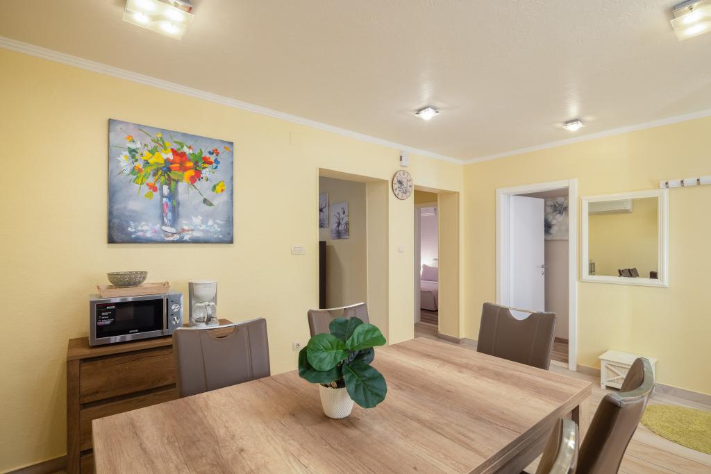 Bienvenue à l'Appartement Perla. À seulement 200 mètres de la plage de Makarska et à 700 mètres de la plage de Ratac. Cet appartement en bord de mer offre un accès à une terrasse spacieuse et vous pourrez profiter d'une connexion Wi-Fi gratuite dans tout l'établissement. L'hébergement est non-fumeur et comprend un espace fitness. L'appartement se compose de deux chambres spacieuses, de deux salles de bains modernes, d'une cuisine entièrement équipée, d'un coin repas et d'un salon avec une télévision à écran plat et des services de streaming. Les clients peuvent profiter de la terrasse avec une belle vue sur la montagne. L'unité est climatisée, équipée d'une douche, d'une armoire et dispose d'une entrée privée et d'une insonorisation pour plus d'intimité. Pour les familles avec enfants, une barrière de sécurité pour bébé est prévue, rendant le séjour confortable et sûr. Les attractions populaires à proximité de l'appartement incluent St. Peter, la gare routière principale de Makarska et la promenade Riva de Makarska. L'aéroport le plus proche est celui de Brač, à 33 km de l'établissement.