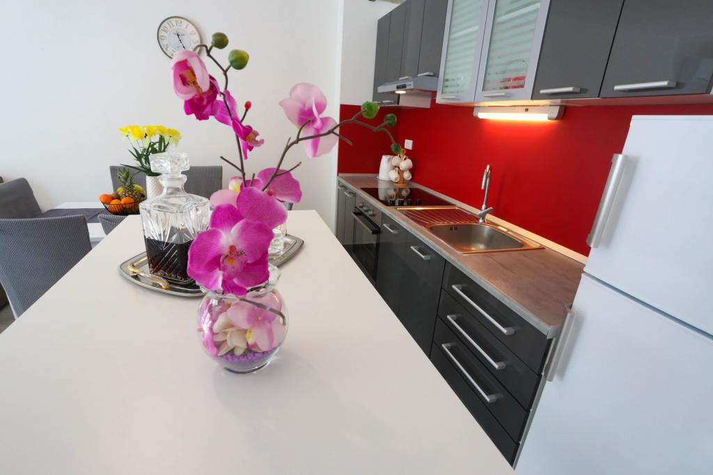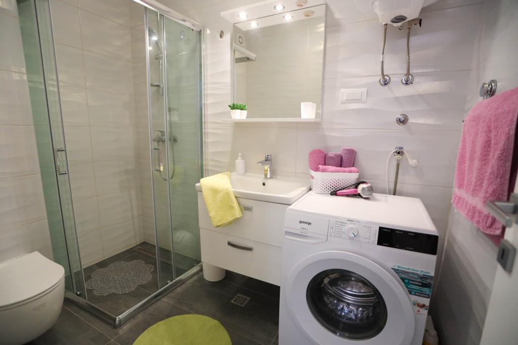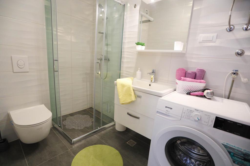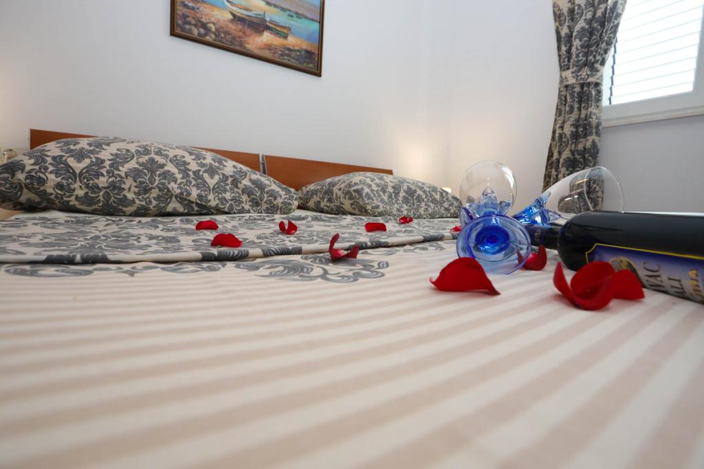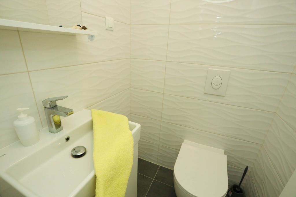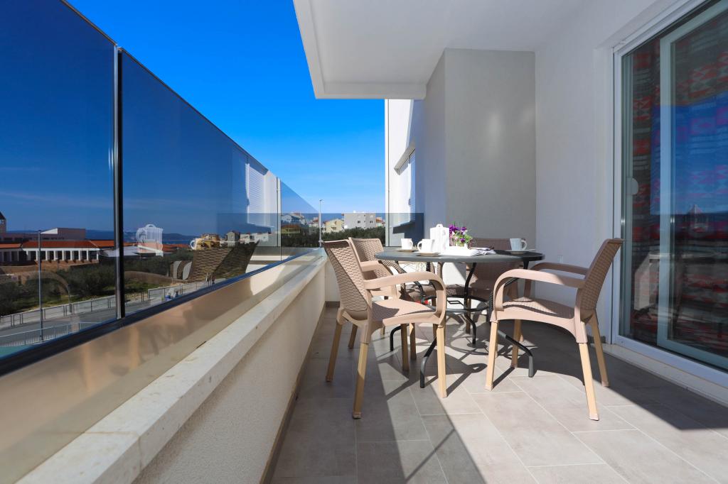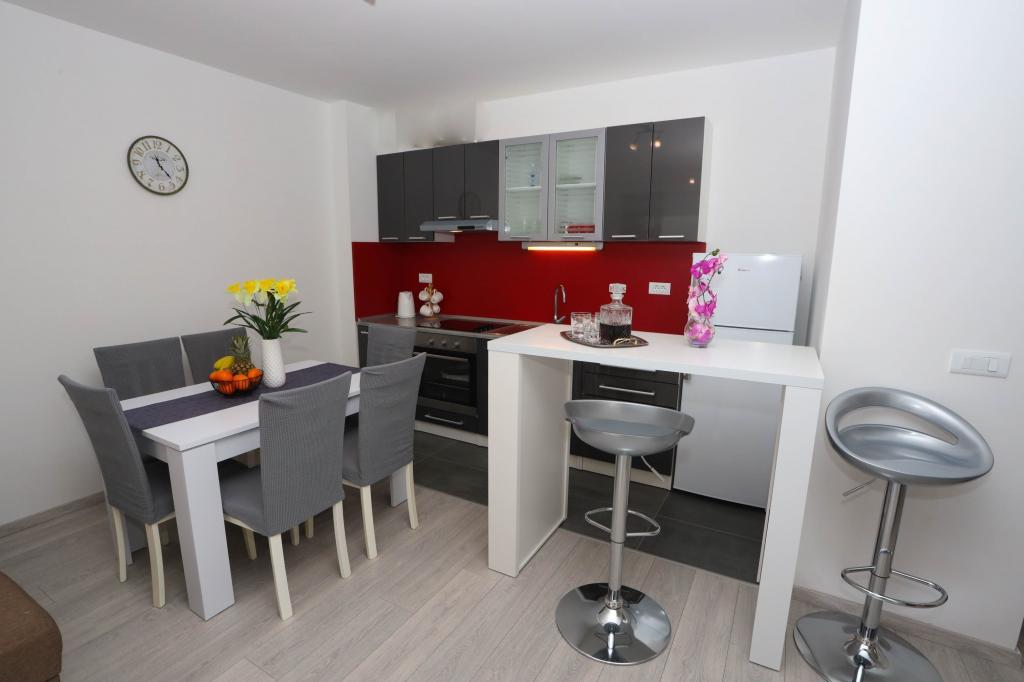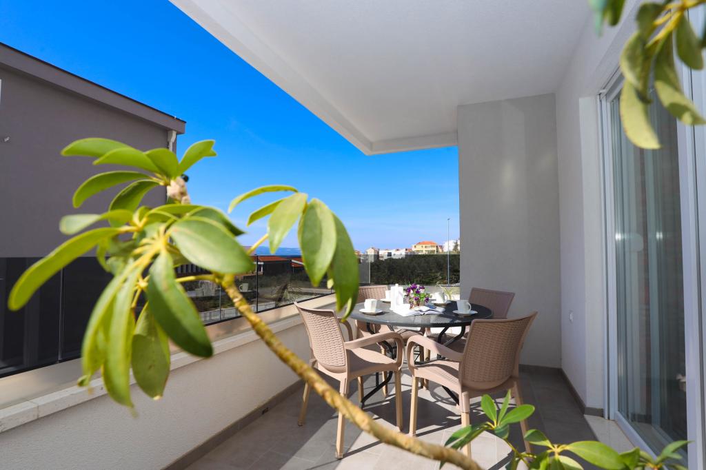 Appartement moderne et équipé situé au premier étage d'un immeuble résidentiel neuf avec ascenseur. Il offre tout le nécessaire pour un séjour agréable. L'appartement Petra comprend une salle à manger avec cuisine équipée, un salon avec un canapé-lit d'appoint, une salle de bains et des toilettes séparées, ainsi que deux chambres. L'une dispose d'un lit double et l'autre de deux lits jumeaux pouvant être séparés si nécessaire. La propriété est située à 5 minutes à pied du centre-ville et de la plage la plus proche. Un commerce et un terrain de sport sont à proximité.