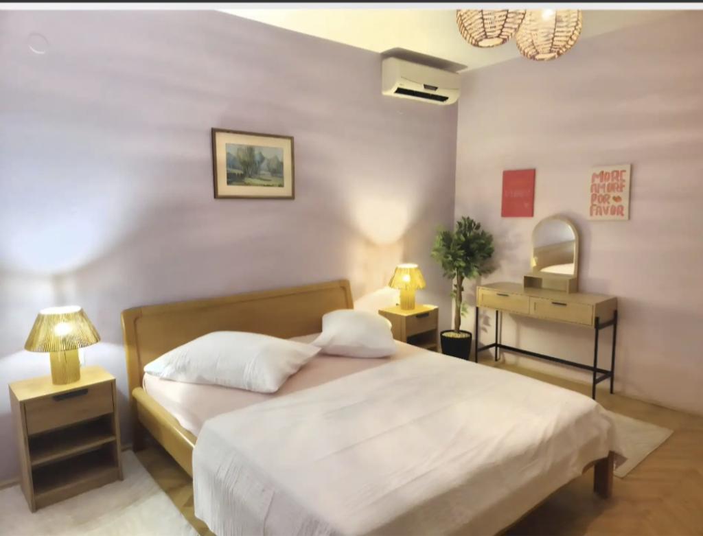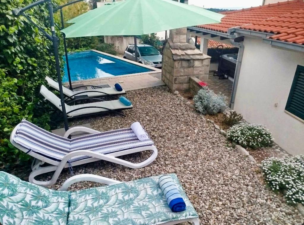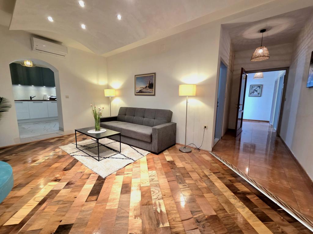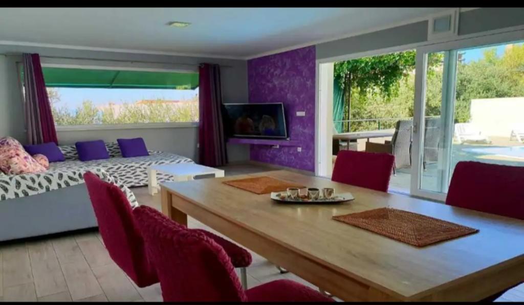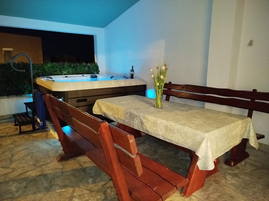 L'appartement Robert se situe à 400 m au-dessus de la vieille ville. D'une superficie de 120 m², il comprend deux chambres, deux salles de bains, un salon et une cuisine. Devant l'appartement, vous trouverez un jacuzzi, une télévision, une table avec bancs, un barbecue, une piscine avec transats et douche, ainsi qu'un parking privé. Bienvenue !