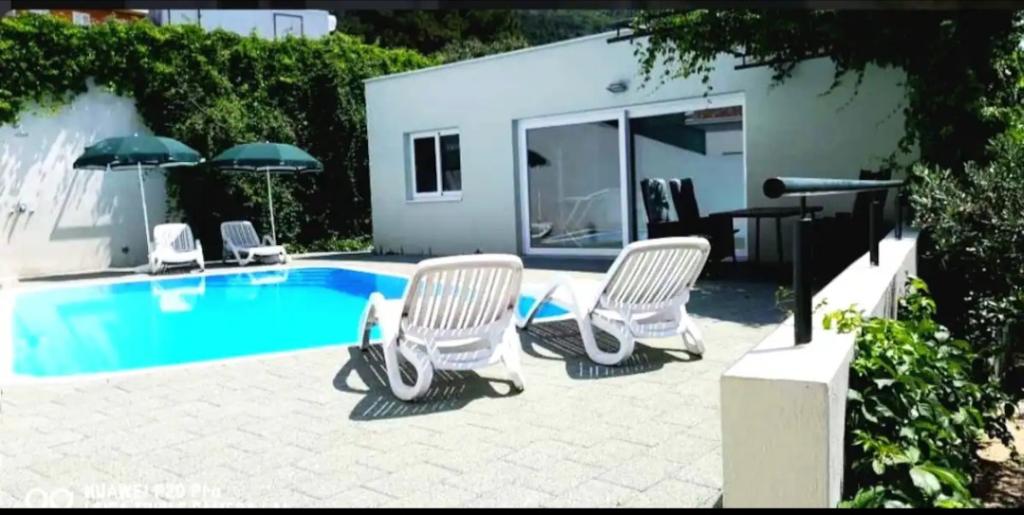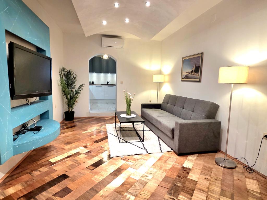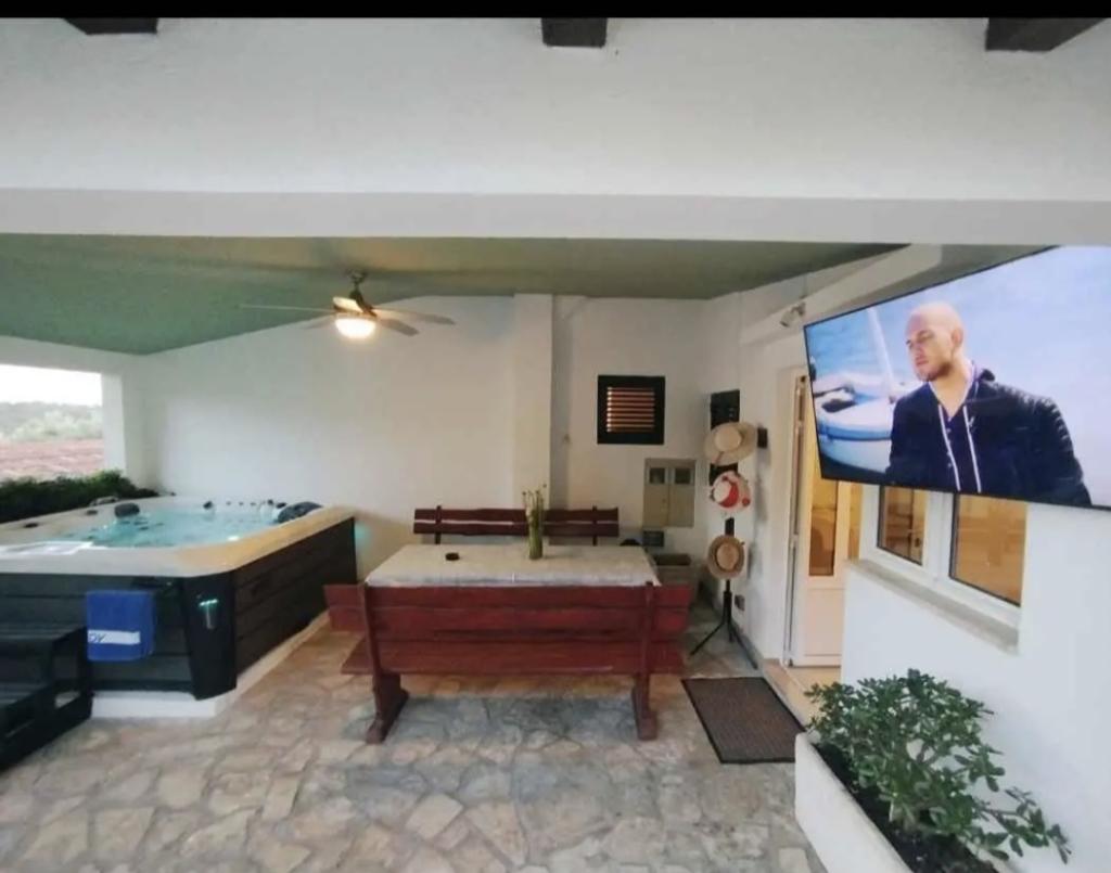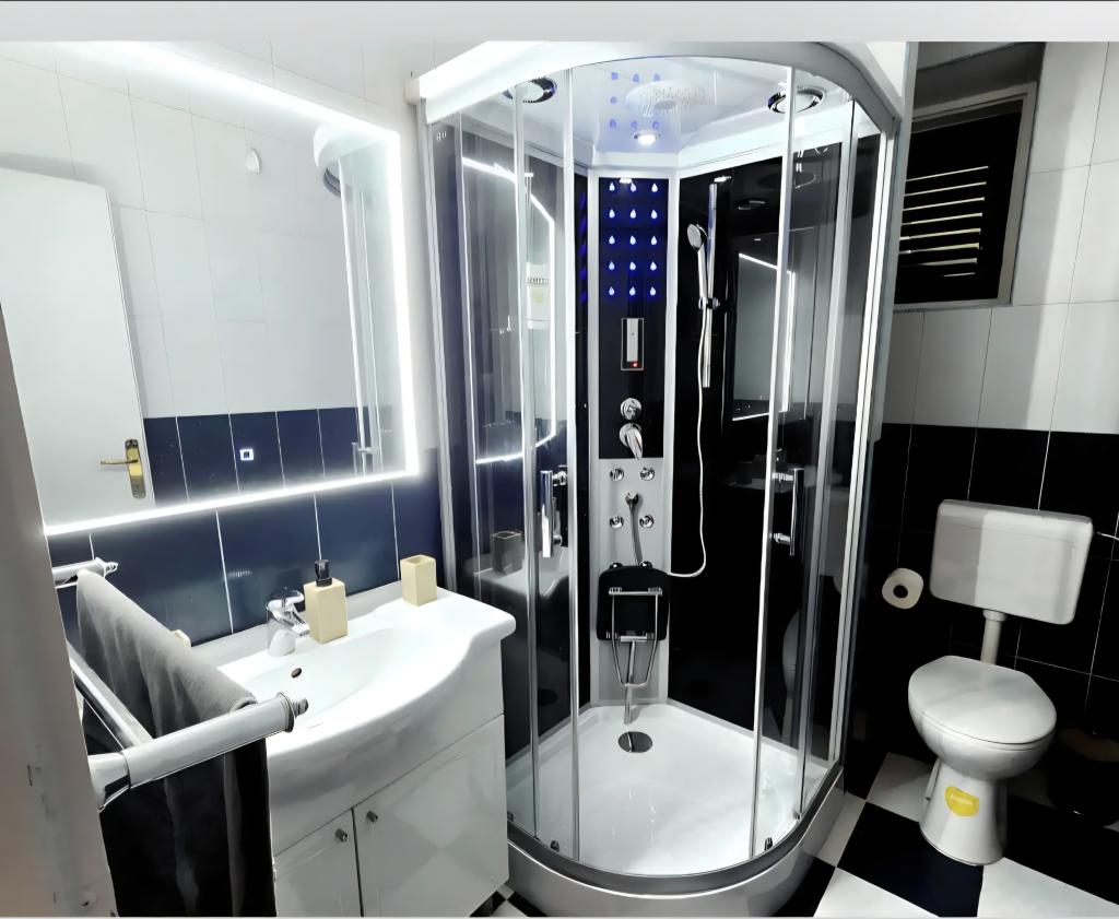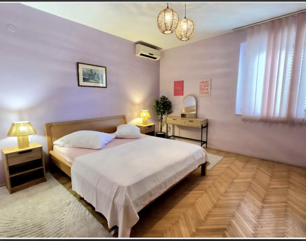L'appartement Robert se situe à 400 m au-dessus de la vieille ville. D'une superficie de 120 m², il comprend deux chambres, deux salles de bains, un salon et une cuisine. Devant l'appartement, vous trouverez un jacuzzi, une télévision, une table avec bancs, un barbecue, une piscine avec transats et douche, ainsi qu'un parking privé. Bienvenue !