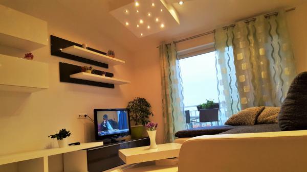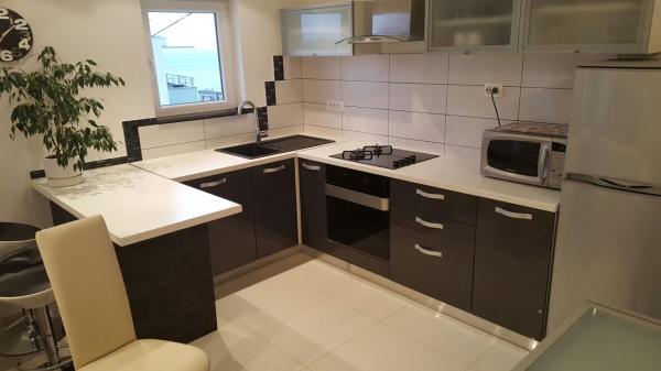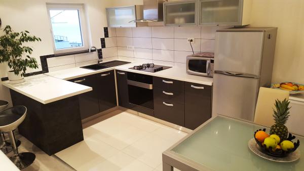 L'appartement moderne et entièrement meublé dans la partie la plus attrayante de Makarska. L'établissement est situé à 5 minutes à pied de la plage et la promenade pleine de diverses installations, comme les bars, restaurants, boutiques de souvenirs et ainsi de suite. Dans la même maison où l'appartement est une pharmacie et un supermarché. Près de 10 à 20 m sont calmes cafés, boulangeries, médecin, pédiatre, ATM, kiosque à journaux et magasins. L'appartement se compose de cuisine, salon, trois chambres, trois salles de bains, grande terrasse et balcon. L'appartement a une vue magnifique sur la mer, les îles, le centre-ville et la pente de la montagne. L'appartement est équipé d'air conditionné qui est un peu dans l'appartement, lave-vaisselle, lave-linge, TV téléviseur à écran plat, wifi gratuit, micro-ondes. Les clients ont accès à la buanderie et les serviettes et autres négociables.