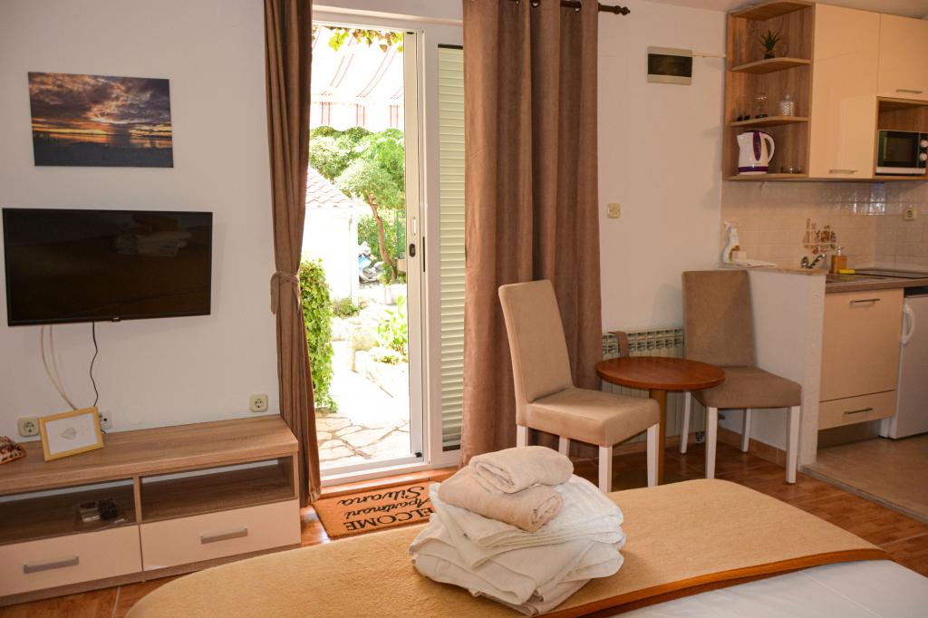 Taxe de sejour est inclus dans le prix.Les appartements "Silvana" sont situés à proximité immédiate du centre de bien-être (piscine, fitness...) et du court de tennis. Les hôtes serviront d'intermédiaire pour l'organisation d'excursions au mont Biokovo et dans les îles voisines et sont disponibles pour toutes informations sur le parapente, le rafting, la location de vélos et de bateaux et d'autres installations.