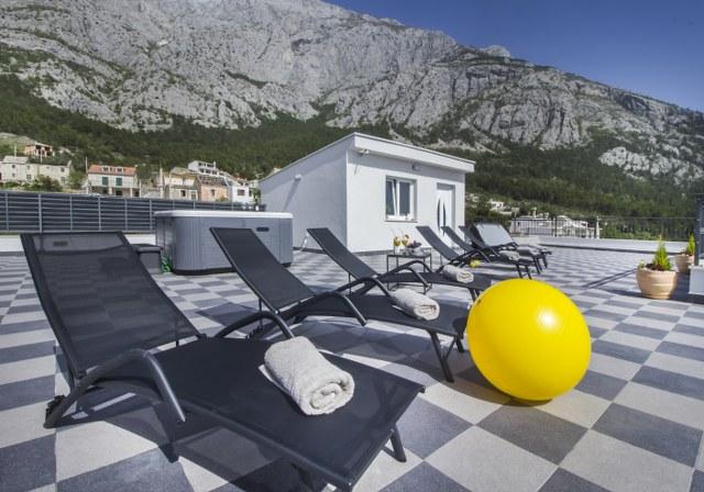 Les appartements et studios Big Hill sont situés dans la partie ouest de Makarska, dans le comté de Split-Dalmatie. Nichés dans un quartier calme de Veliko Brdo, à proximité de l'église Saint-Jérolim, ils sont entourés d'une oliveraie centenaire et de champs de lavande. Tous les logements offrent une vue imprenable sur la mer et les îles. Un espace spa avec jacuzzi et chaises longues est accessible à tous les clients sur le toit. La vue depuis la terrasse est spectaculaire et laisse sans voix : mer, îles et massif du Biokovo en toile de fond. À proximité, vous trouverez deux restaurants et un grand supermarché. La plage la plus proche est à 2 km et le centre-ville à 3,5 km. Tous les logements sont meublés avec goût et équipés de la climatisation, d'une connexion internet gratuite et d'un parking devant l'établissement.
