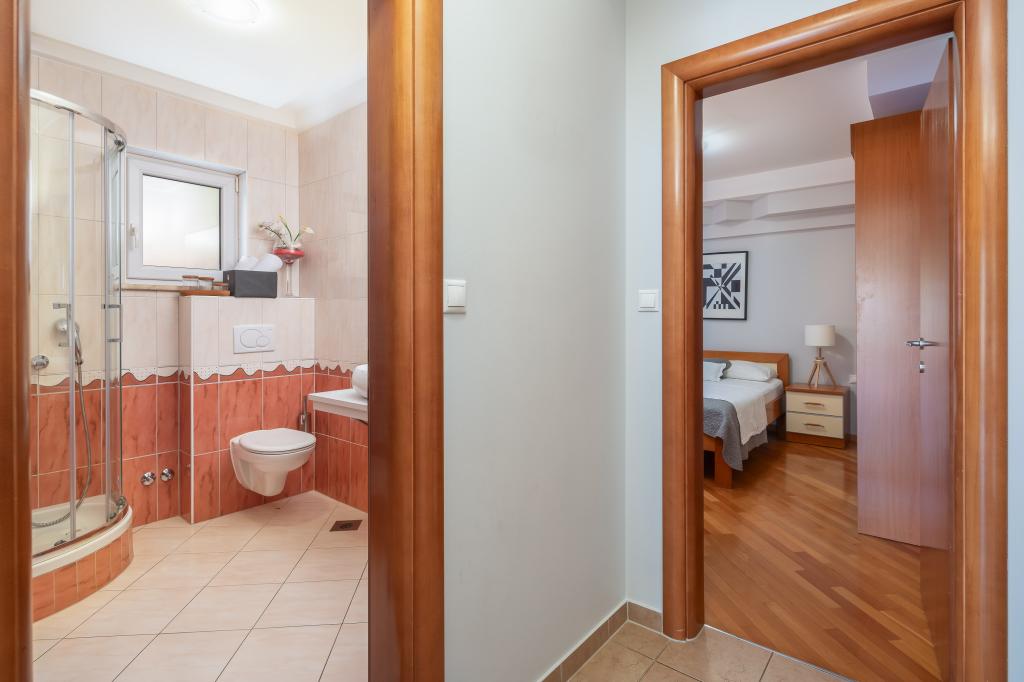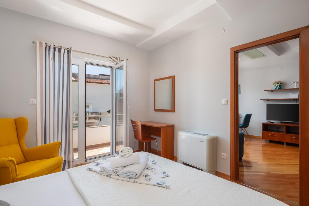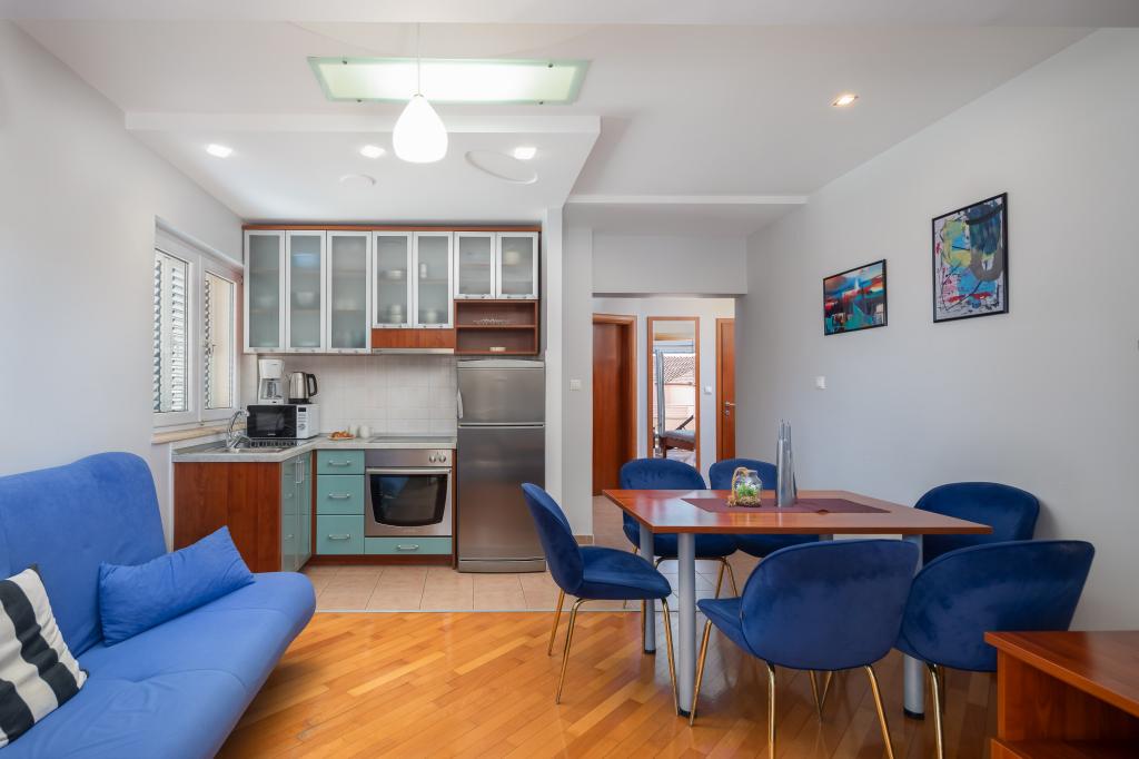 Les Appartements Brkić proposent des appartements familiaux spacieux dotés de meubles de qualité. Tous les appartements disposent d'une connexion WiFi de haute qualité, sont climatisés et disposent d'une place de parking gratuite devant la maison. Notre appartement penthouse offre une grande terrasse avec vue sur la mer et une cheminée pour griller et cuire au four. Au rez-de-chaussée du bâtiment se trouve une salle commune où l'on peut faire la lessive. Notre personnel est disponible pour vous conseiller et vous assister tout au long de votre séjour.