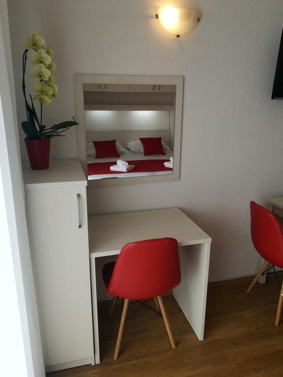 Les appartements Dević sont situés au-dessus du centre de la ville de Makarska, dans un endroit calme avec une vue magnifique sur la ville, la mer et les îles environnantes de Brač et Hvar. La belle plage de galets se trouve à seulement 1 000 m. Les appartements sont entourés de plantes méditerranéennes parfumées qui rendent votre séjour plus détendu et agréable. L'appartement dispose de son propre parking, d'un balcon avec vue sur la mer, d'une cuisine équipée d'appareils électroménagers, d'ustensiles et de vaisselle, d'une chambre, d'une salle de bain avec douche, de la climatisation et d'une télévision.