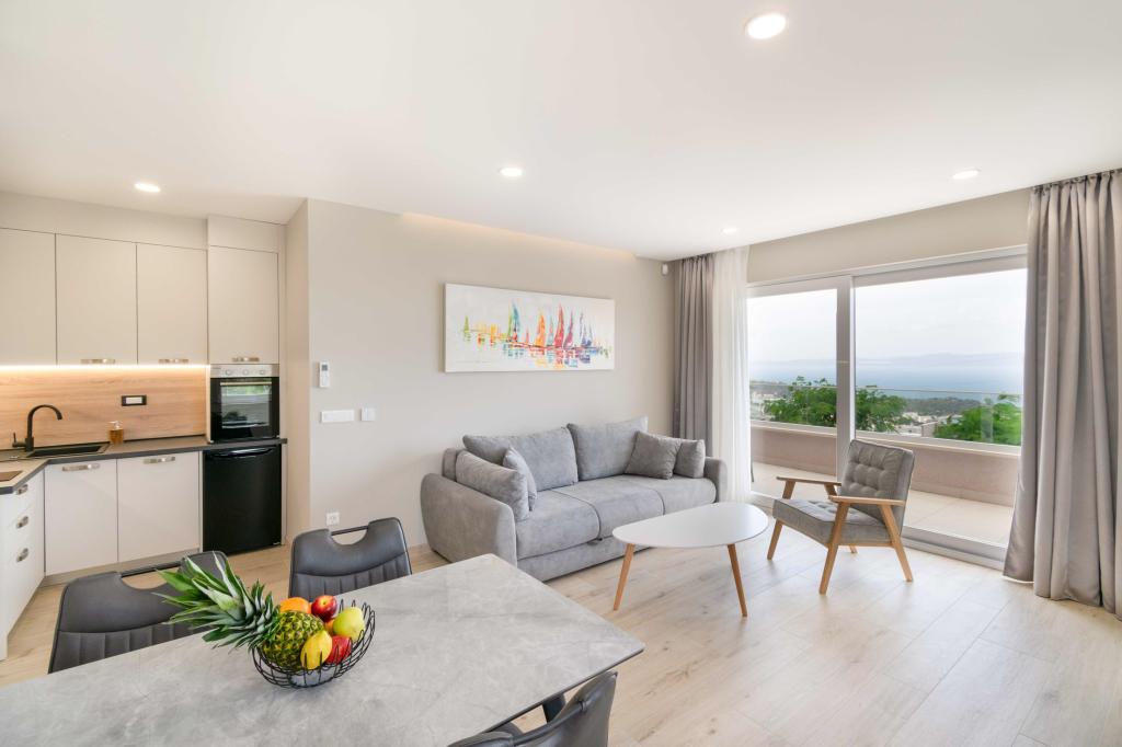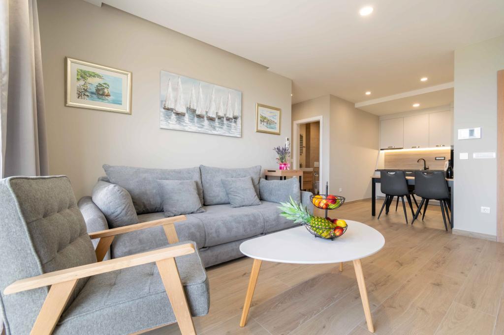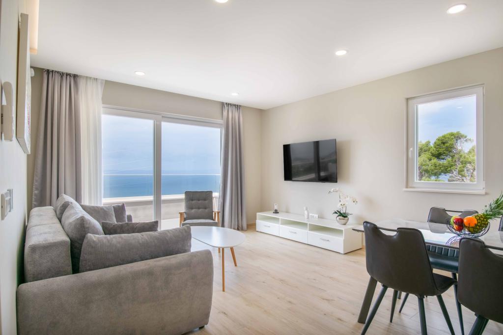 Appartements modernes 2+2 avec vue sur la mer à Makarska Appartement moderne de 50 m². 1 chambre, 1 salle de bain, cuisine entièrement équipée. Belle vue sur la mer. Les appartements comprennent une place de parking devant le bâtiment. Organisez une visite aujourd'hui et faites de cet appartement votre nouvelle maison.