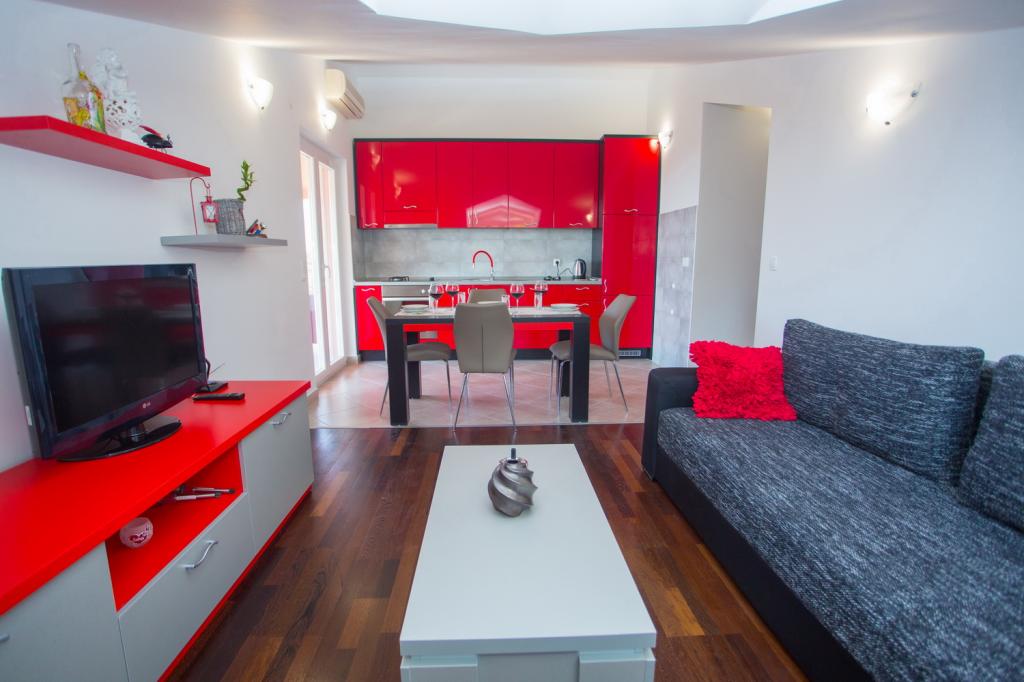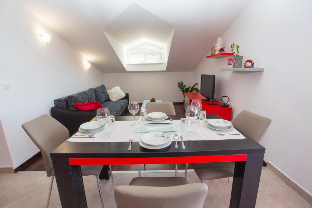 Appartements entièrement équipés et modernes dans un quartier calme de Makarska situé près de la mer. L'établissement est situé à 20 minutes à pied du centre et à 15 minutes à pied de la première plage. Les appartements idéaux pour 4 personnes disposent d'une chambre et d'un grand canapé-lit dans le salon. L'appartement dispose d'une terrasse couverte de 16 m2 idéale pour les après-midi et les joies tôt le matin devant la maison et un parking sécurisé. Les prix sont uniquement déterminés sur demande en fonction de la durée du séjour, nous approuvons la réduction, des réductions supplémentaires sont accordées sur certaines réservations.