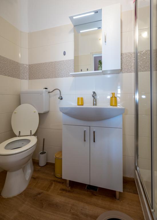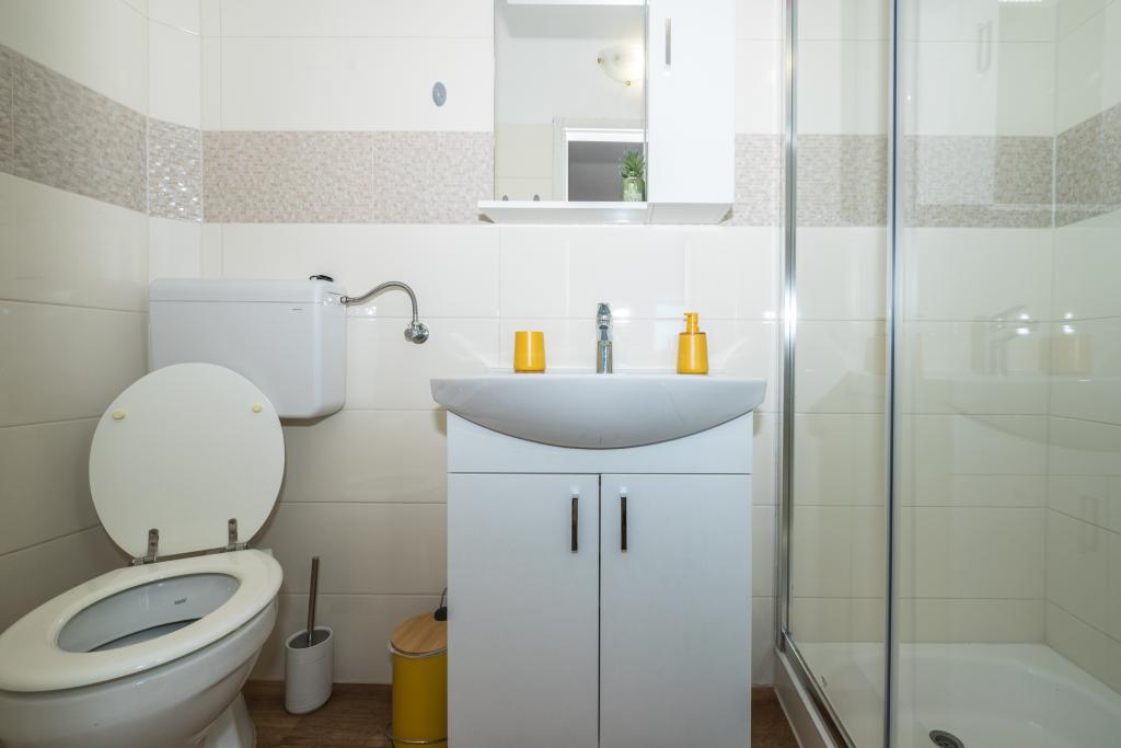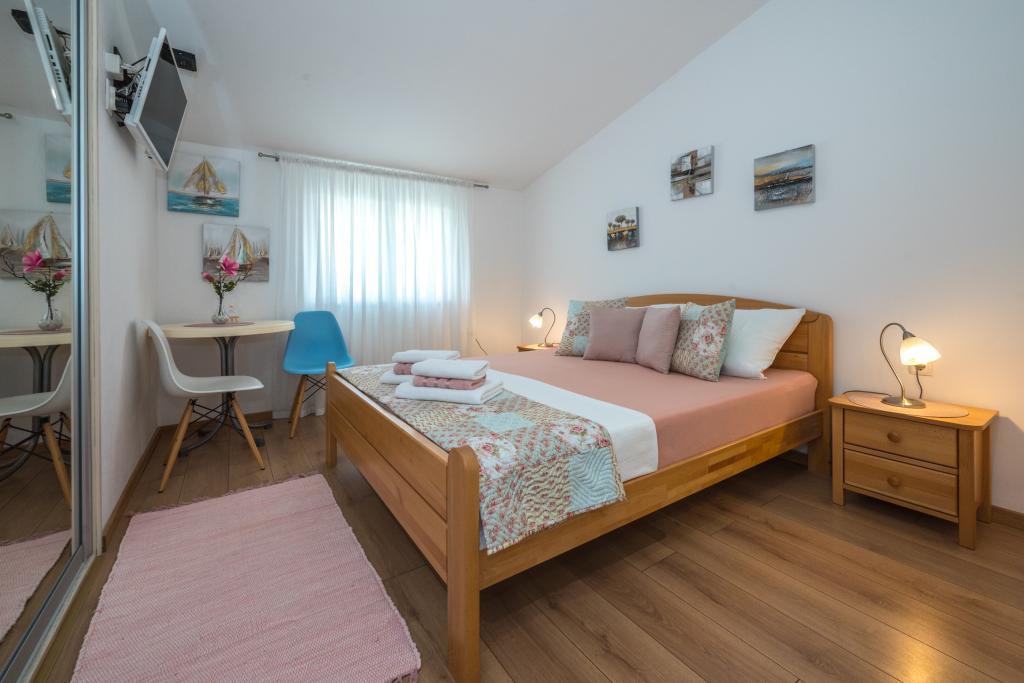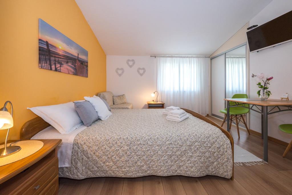 Les chambres sont propres, modernes et bien équipées. Elles se situent au deuxième étage d'une maison familiale avec une cour pour garer les voitures des hôtes. La maison est située dans un quartier touristique très agréable de Makarska, à environ 90 m de la plage et à moins de 200 m de huit hôtels. L'hôte possède une longue expérience dans le secteur du tourisme. À 500 m de la maison se trouvent un centre de tennis et un parc aquatique, à 800 m le principal parc urbain de la ville avec ses installations sportives et de loisirs, et à 1 000 m le début du centre-ville. Un centre de plongée est situé à 100 m, et à la même distance se trouve l'hôtel Biokovka, qui propose des piscines intérieures, des saunas, des salles de sport, de la kinésithérapie et des massages. Parmi les attractions à proximité, citons le musée des coquillages en ville, le parc naturel de Biokovo avec sa célèbre passerelle panoramique, les lacs Rouge et Bleu à Imotski, les excursions en bateau touristiques vers l'île et la ville de Korčula, et la célèbre plage de Zlatni rat sur l'île de Brač.