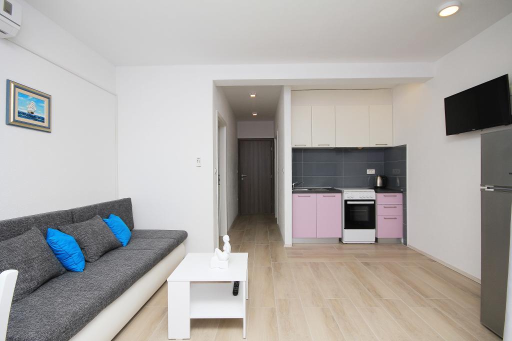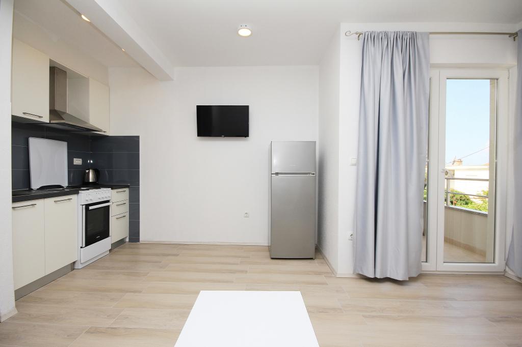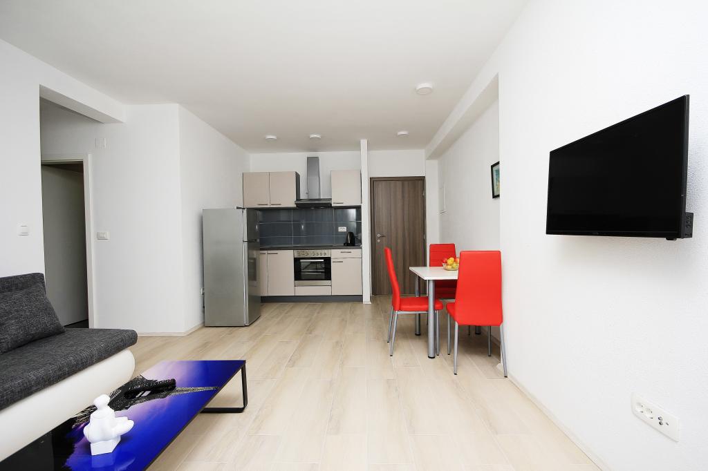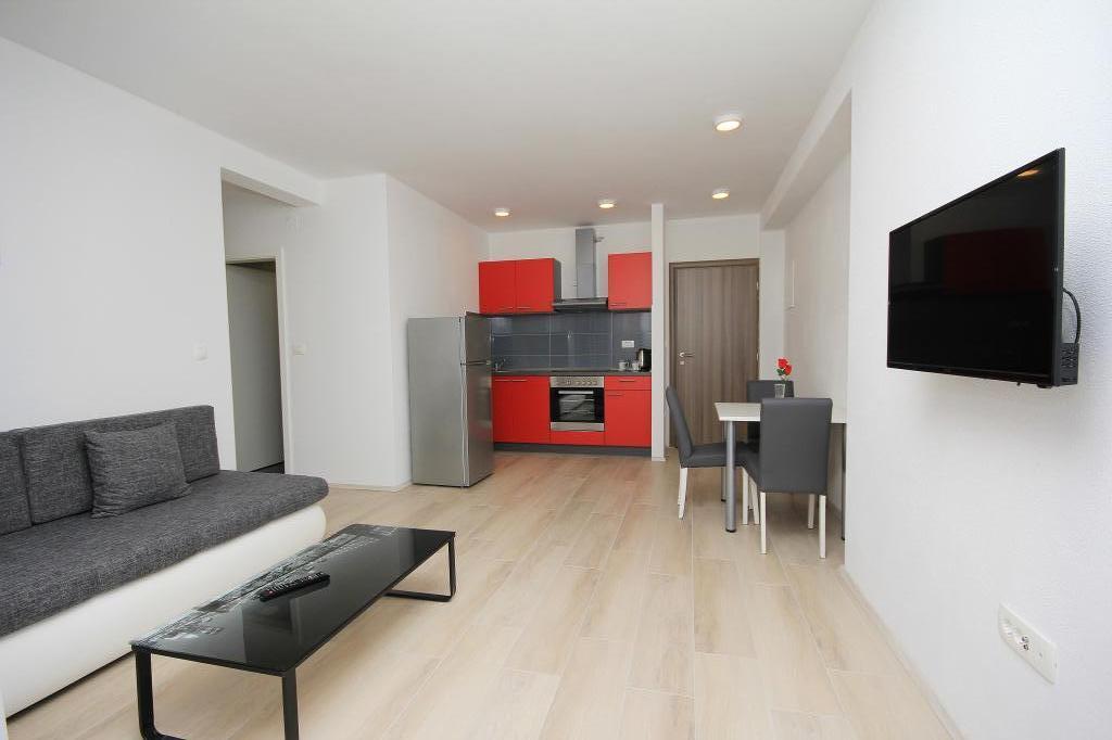 L'appartement est situé dans un quartier calme de la ville, avec parking gratuit, à 2 minutes à pied de la mer. Toutes les commodités sont à proximité, comme un marché, un marché, un restaurant, une boulangerie, un guichet automatique, une pharmacie.