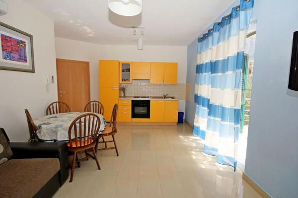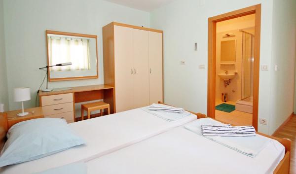 Les appartements Mikulić sont situés dans 2 maisons familiales entourées d'un grand jardin et de vieux oliviers. Ils sont à 100 m de la mer et des plages, et à 800 m du centre ville. Il y a un supermarché, des cafés, des restaurants et une école de plongée à proximité immédiate. Nous disposons d'un parking sécurisé pour tous nos clients. Au premier étage se trouvent 2 appartements Bava A4+2 qui peuvent être reliés.