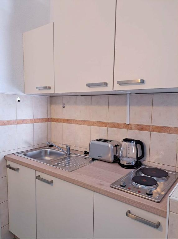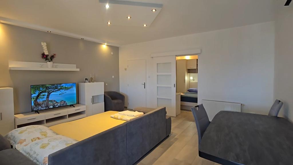 Nous proposons plusieurs appartements et studios. Nos appartements et studios peuvent être doubles, triples ou quadruples. Chaque appartement et studio est climatisé et dispose d'un balcon, d'une cuisine entièrement équipée, d'une salle de bains, d'une télévision et d'une connexion Wi-Fi. Les prix commencent à 35 € par personne et varient selon l'appartement choisi. Avantage : la proximité des plus belles plages de la Riviera de Makarska, sans l'agitation de la ville. Toutes les plus belles plages se trouvent juste en contrebas et sont accessibles en moins de 2 minutes en voiture. Nous sommes situés à environ 1 km de la première plage de Makarska, l'une des plus belles de la région. Le trajet en voiture dure environ 2 minutes. En contrebas se trouvent certaines des plages les plus propres et les plus belles de Makarska. Plages à proximité : Plage de Buba, Plage de Biloševac, Plage de Cubano, Plage de Cvitačka. Nous sommes à environ 300 m du premier magasin, boucherie et café, et à 100 m du premier restaurant. Un parking gratuit est mis à la disposition de nos clients juste devant la maison.