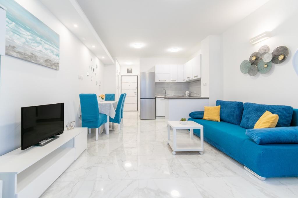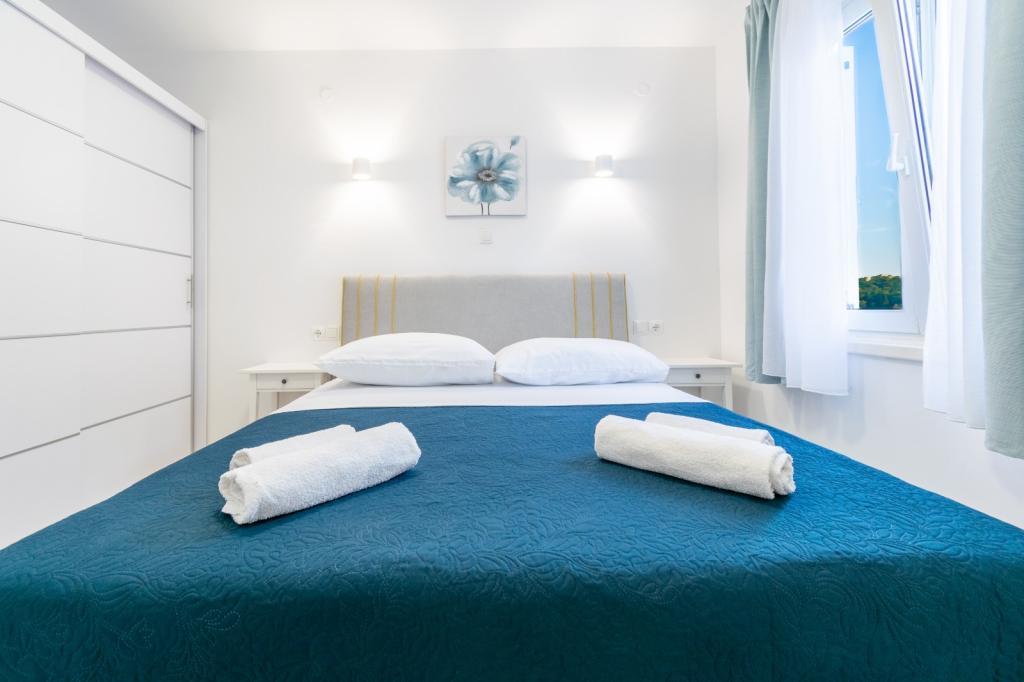 Nous vous proposons trois appartements situés à TROIS EMPLACEMENTS DIFFÉRENTS. Tous les appartements sont climatisés et équipés du Wi-Fi. - LE PREMIER APPARTEMENT VUE MER (4+1) ID : 14915 est situé en centre-ville, au 14 rue Gradišćanskih Hrvata, à 300 m de la plage. Il comprend deux chambres, une salle de bains, une cuisine entièrement équipée et un séjour avec terrasse offrant une vue imprenable sur la mer et les îles. L’appartement dispose d’une place de parking privative. - LE DEUXIÈME APPARTEMENT EASY (4+1) ID : 63248 est situé en centre-ville, au 7b rue Kralja Petra Krešimira IV, à 70 m de la plage. Cet appartement comprend deux chambres, une salle de bains, une cuisine et un séjour. Il est situé au rez-de-chaussée surélevé. À proximité immédiate, vous trouverez des commerces, une pharmacie, une banque et des restaurants. Parking disponible. L'appartement TROISIÈME, BLEU (3+1), réf. 77271, est situé au 39, rue Zrinsko-Frankopanska, à 500 m du centre-ville et de la plage principale. Il comprend une chambre, un séjour, une cuisine entièrement équipée, une salle de bains et un balcon. Une place de parking est disponible devant l'immeuble. Commerces et cafés se trouvent à proximité.