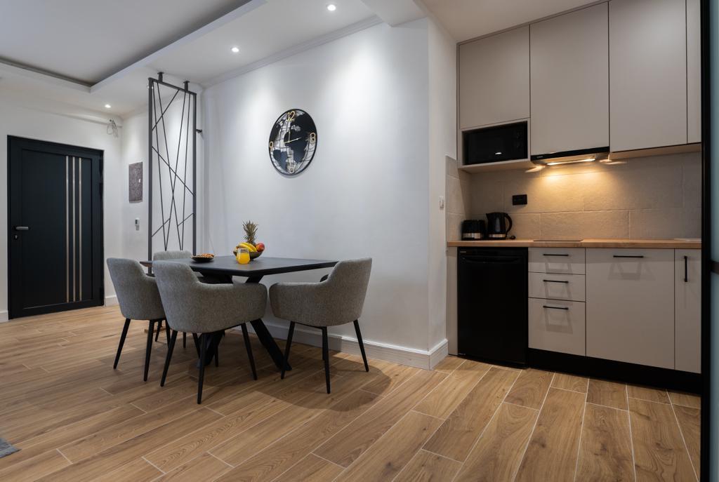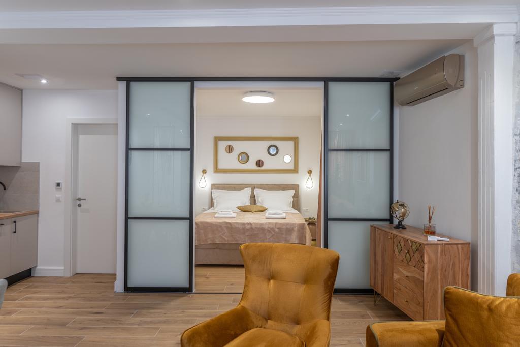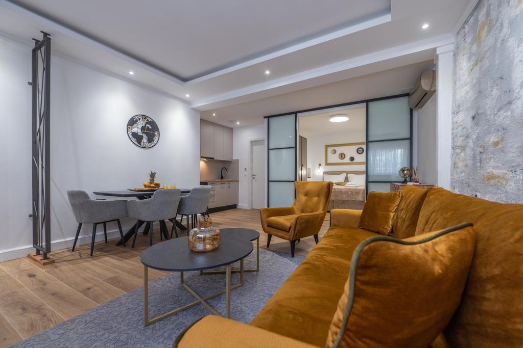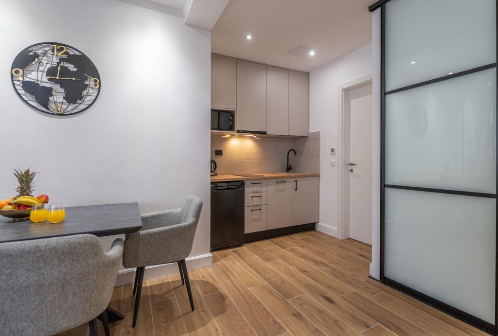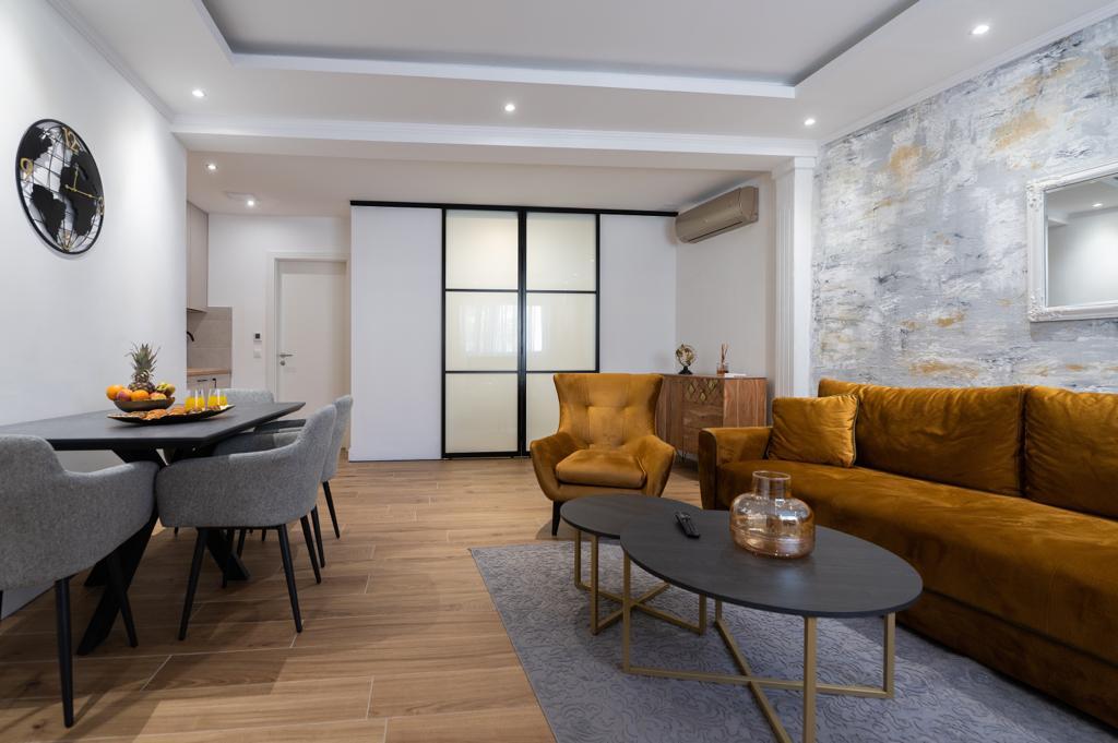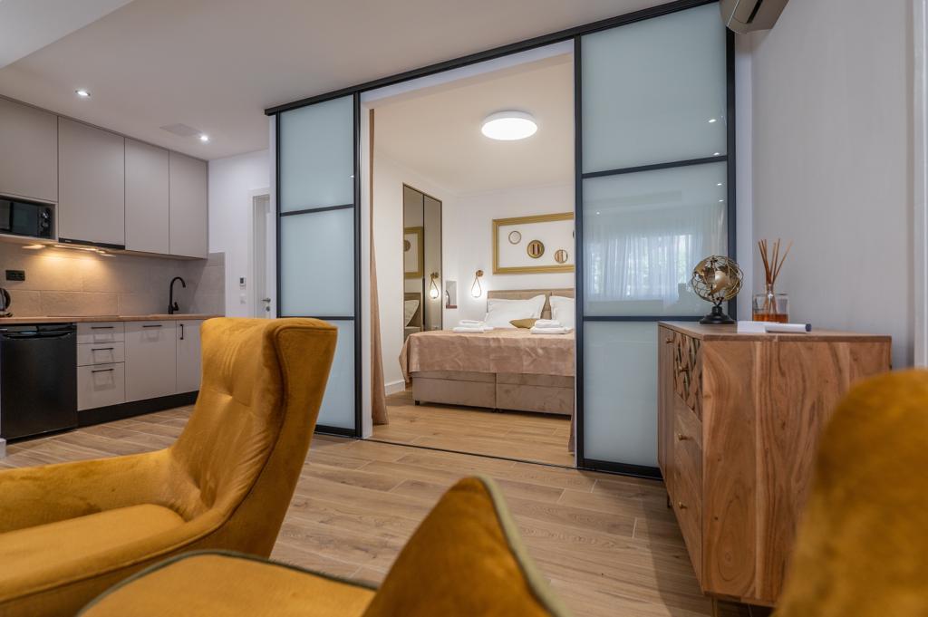 L'appartement "Petra" et l'appartement Rustic sont situés dans un endroit très attrayant dans le centre-ville avec un minimum de bruit de la ville. Les appartements sont entourés de toutes les commodités importantes pour un séjour simple et agréable. La gare de la ville se trouve à seulement deux cents mètres des appartements. Il y a deux supermarchés dans la même rue et la célèbre pharmacie "DM" se trouve en face des appartements. Dans la même direction, il y a de nombreux restaurants servant une cuisine traditionnelle et internationale et surtout, la plage se trouve en face des appartements. L'appartement Old Town Square est séparé et situé dans un endroit différent, plus précisément en plein cœur de la ville. Place Kačić.