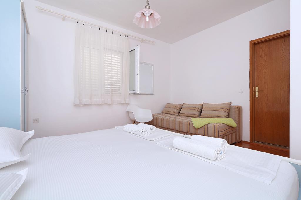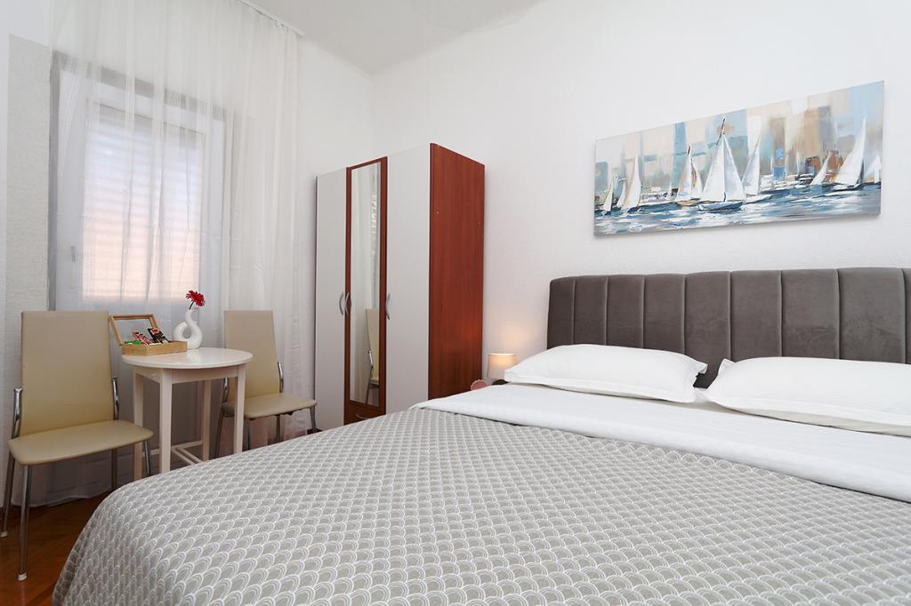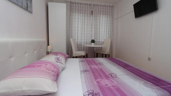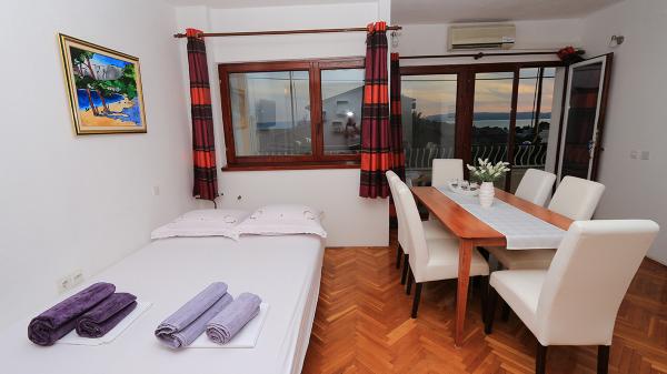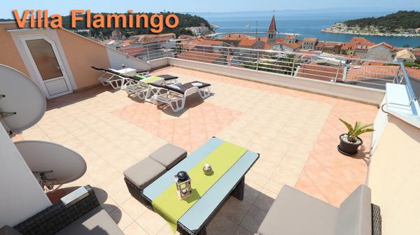 Les appartements et chambres Villa Flamingo sont situés dans le centre-ville, à l'écart de la route principale, dans un environnement calme avec un grand jardin et un parking. Tout est situé en centre ville, les appartements sont situés à 100 m de la place principale, 300 m du front de mer, 500 m de la plage. Les appartements sont éloignés de la route principale, nous garantissons donc des vacances paisibles et tranquilles. Devant la maison, dans le jardin, nous avons une grande cheminée où vous pourrez préparer des grillades et dîner dans la belle ambiance de notre jardin. Le balcon offre une vue sur la mer et le port de la ville, ainsi que sur les îles de Brač et Hvar. Tous les appartements sont climatisés, équipés de télévision par satellite et d'internet WiFi. En accord avec les hôtes, nous organisons le transport de l'aéroport à l'appartement. Les appartements disposent d'un accès Internet sans fil. Au sommet de la maison, nous avons une grande terrasse avec une vue magnifique sur la mer et la ville, à l'usage de tous les invités. Il est possible d'organiser le petit déjeuner, le déjeuner, le dîner dans un restaurant à proximité.