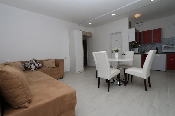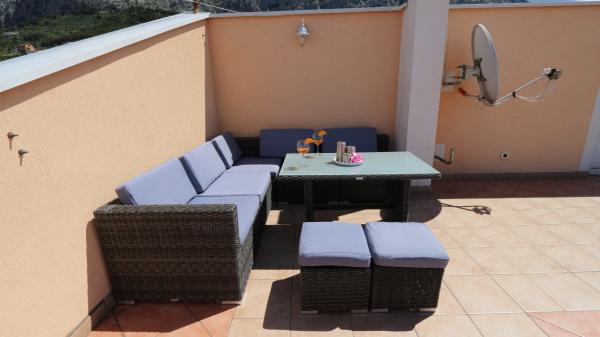 Superbes appartements, deux grandes salles de bains et trois chambres avec belle terrasse privée donnant sur le jardin et un espace barbecue bien entretenu. Hôtes accueillants incroyables - propriétaires étaient très sympa, chaleureux et gentil et toujours nous ont accueillis le matin pour voir si les choses allaient bien. Nous avons été très heureux de passer une nuit avec le propriétaire dégustation de grappa locale tout en écoutant l'histoire et la croatie première main. L'emplacement est incroyable, 10 min à pied de la plage, à 5 min du centre principal avec les supermarchés et beaucoup de distributeurs automatiques de billets et 5 à pied de la station de bus, si vous venez de Dubrovnik ou de Split. En plus de l'excellent service et l'emplacement, il y avait un toit incroyable balcon terrasse avec vue imprenable sur Makarska et les îles, je dirais que l'une des meilleures de la ville.