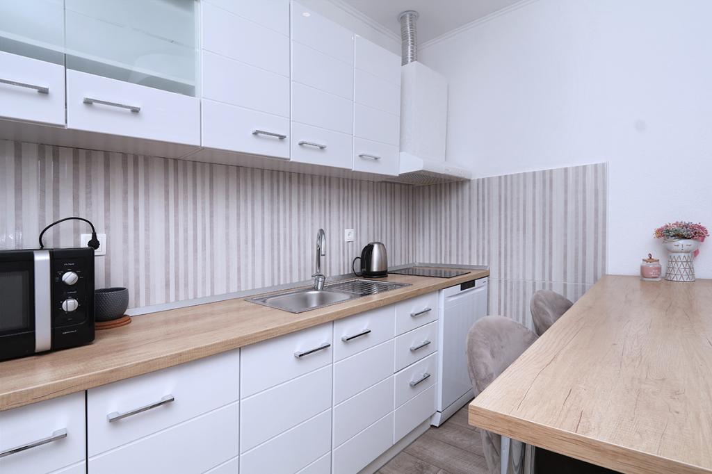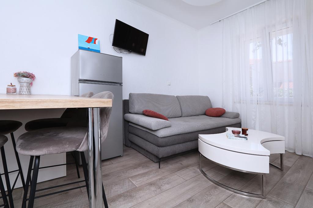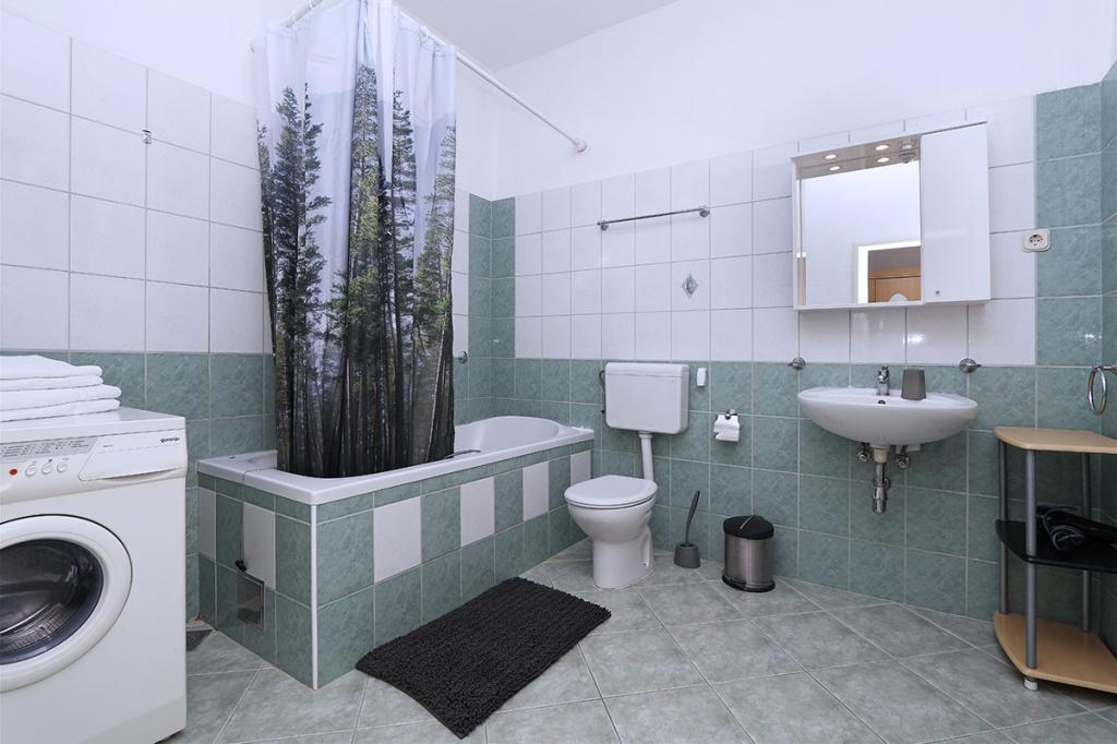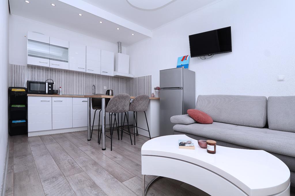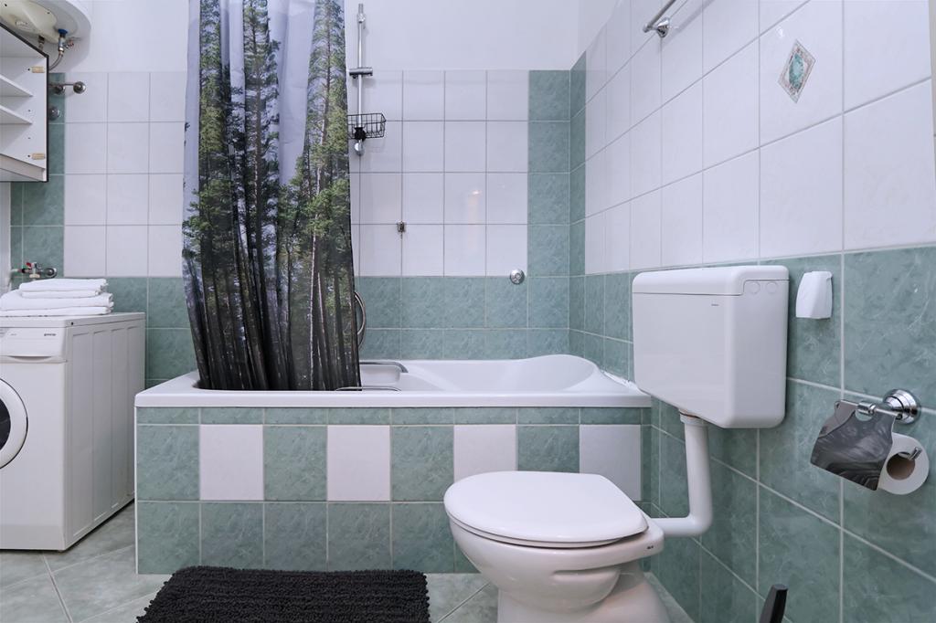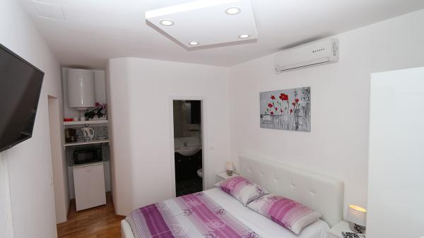 Le logement était très confortable pour notre famille (2 adultes et un fils de 16 ans), assez grand et bien équipé. La cuisine est moderne et comprend tout ce dont vous avez besoin (cuisinière, micro-ondes, bouilloire, évier et vaisselle), elle sert directement de salon avec une grande pièce et en même temps d'espace nuit pour nos grands. La chambre est mise à disposition comme une pièce séparée - ergonomique et compacte : avec un lit double et une armoire. La chambre est du côté ombragé de l'appartement et offre un espace frais. La salle de bain est immense et dispose d'une grande baignoire avec douche. Il y a une machine à laver entièrement fonctionnelle et il y a même un sèche-cheveux. Malheureusement, nous n'avons remarqué qu'un seul défaut : la climatisation ne fonctionne pas correctement. Celui-ci est situé dans le couloir et devrait refroidir tout l'appartement, il suffit de ventiler. L'appartement a sa propre terrasse qui est magnifique. Dans le complexe résidentiel au niveau supérieur, il y a une grande terrasse pour tous les invités, qui offre une vue magnifique sur la mer, la vieille ville et la ville dans son ensemble. Juste très pratique pour admirer les couchers de soleil. Nous sommes en vacances à Makarska pour la 5ème fois et pouvons donc comparer avec les hébergements précédents : c'était un appartement TOP avec des hôtes très sympathiques et un bel emplacement central au cœur de la vieille ville.