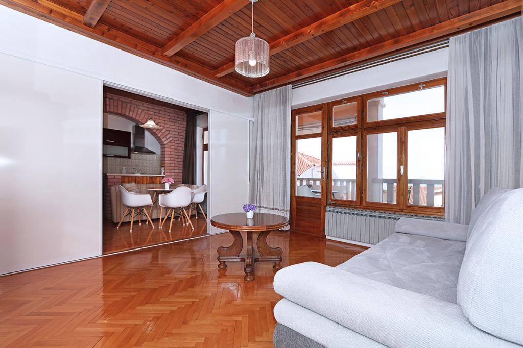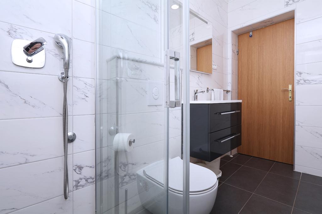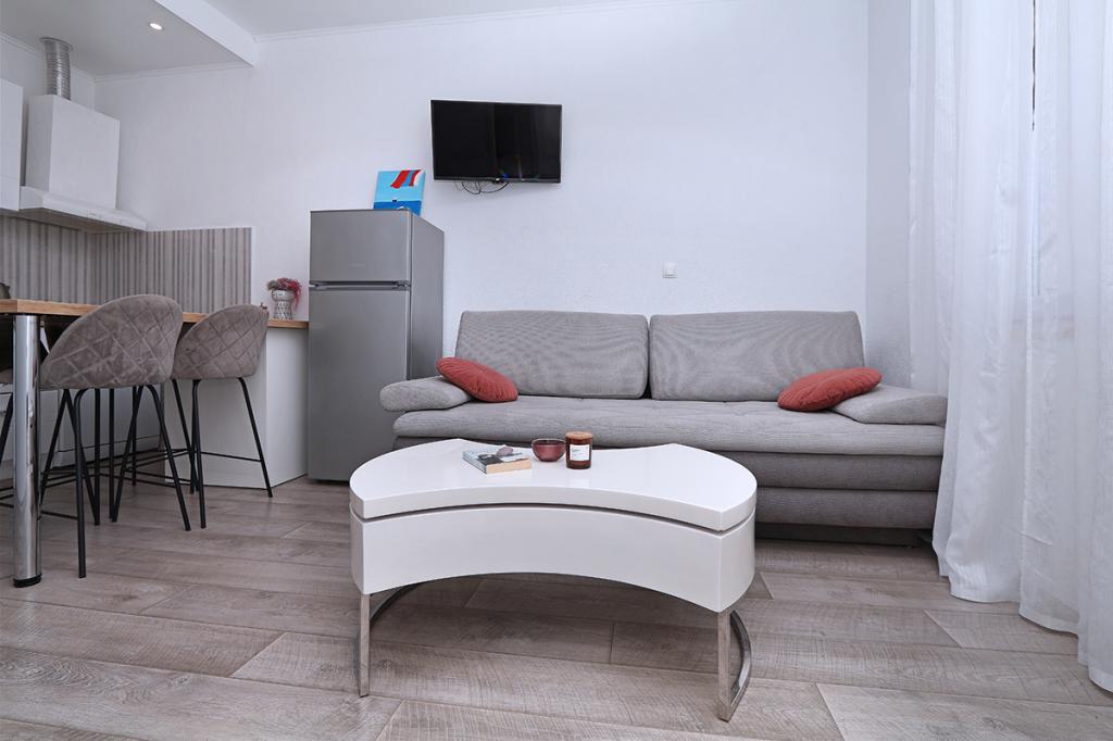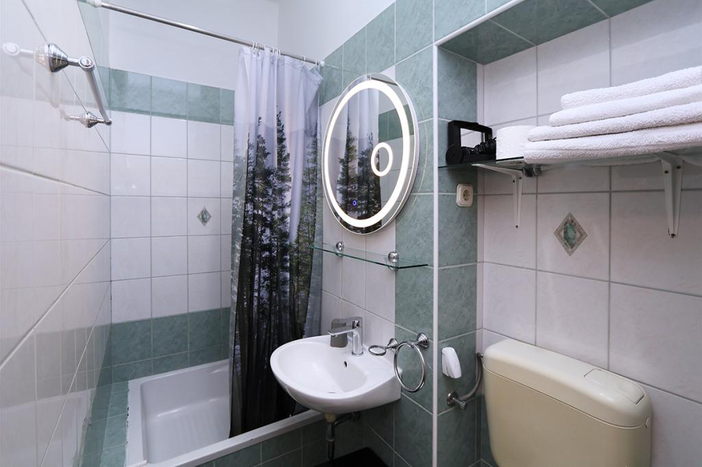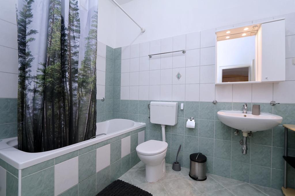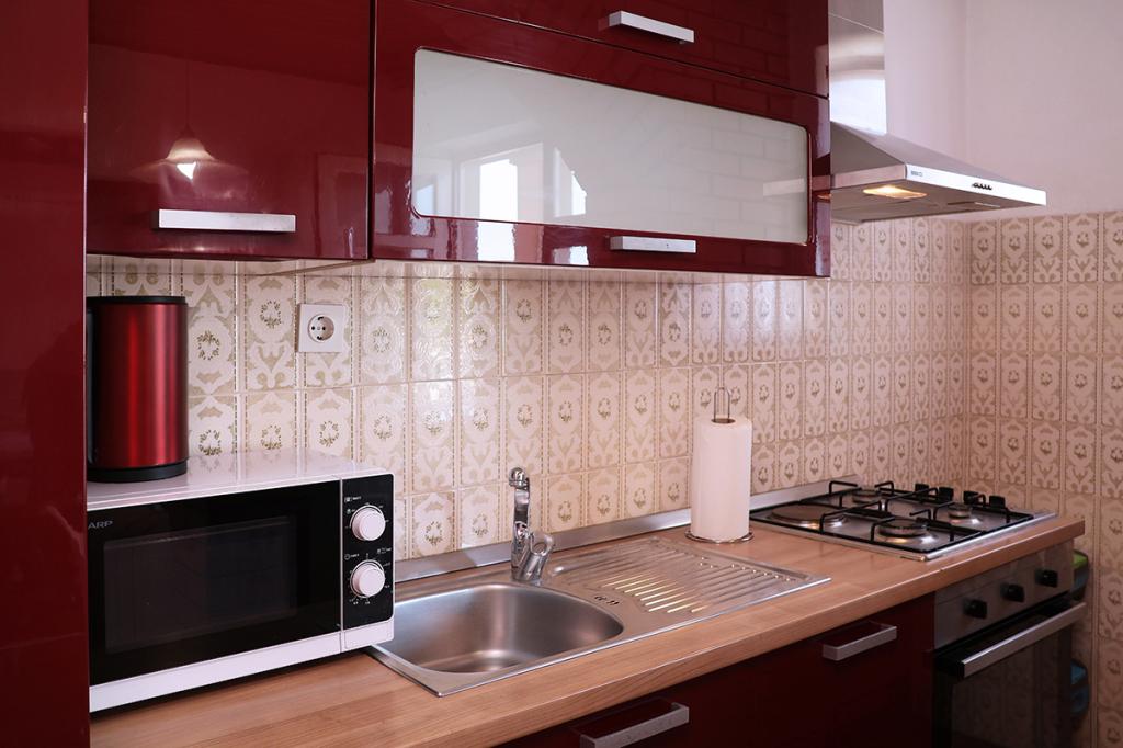 Le logement était très confortable pour notre famille (2 adultes et un fils de 16 ans), assez grand et bien équipé. La cuisine est moderne et comprend tout ce dont vous avez besoin (cuisinière, micro-ondes, bouilloire, évier et vaisselle), elle sert directement de salon avec une grande pièce et en même temps d'espace nuit pour nos grands. La chambre est mise à disposition comme une pièce séparée - ergonomique et compacte : avec un lit double et une armoire. La chambre est du côté ombragé de l'appartement et offre un espace frais. La salle de bain est immense et dispose d'une grande baignoire avec douche. Il y a une machine à laver entièrement fonctionnelle et il y a même un sèche-cheveux. Malheureusement, nous n'avons remarqué qu'un seul défaut : la climatisation ne fonctionne pas correctement. Celui-ci est situé dans le couloir et devrait refroidir tout l'appartement, il suffit de ventiler. L'appartement a sa propre terrasse qui est magnifique. Dans le complexe résidentiel au niveau supérieur, il y a une grande terrasse pour tous les invités, qui offre une vue magnifique sur la mer, la vieille ville et la ville dans son ensemble. Juste très pratique pour admirer les couchers de soleil. Nous sommes en vacances à Makarska pour la 5ème fois et pouvons donc comparer avec les hébergements précédents : c'était un appartement TOP avec des hôtes très sympathiques et un bel emplacement central au cœur de la vieille ville.