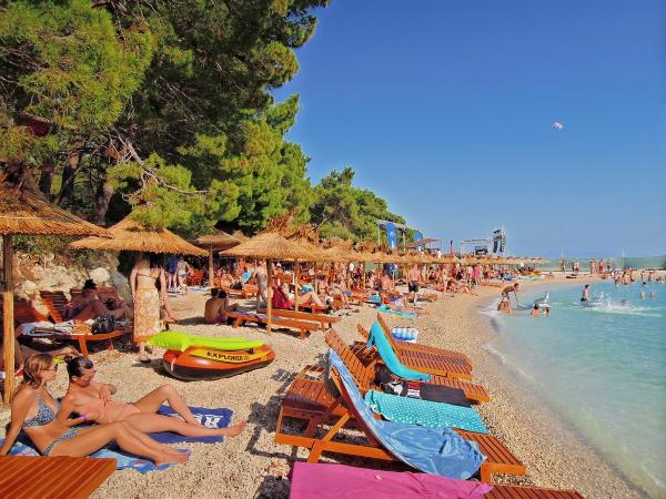 Grâce aux excursions en bateau organisées, vous pourrez visiter les îles de Hvar, Brač, Korčula, faire du rafting sur la rivière Cetina (45 minutes en voiture) ou jusqu'à la magnifique montagne Biokovo (30 minutes en voiture), visible depuis la ville elle-même. . 5 km plus loin, vous pourrez découvrir le tourisme rural avec des spécialités locales (Veliko brdo, Gornje Tučepi, Makar, . . ) et recréer des balades dans la nature. Sur la plage, il y a la possibilité de louer des pédalos, des vélos, des hors-bord et des bateaux, vous pourrez vous détendre sur les courts de tennis et les installations de jet-ski sur la plage. L'endroit est entouré de nombreuses plages et criques isolées, et après la baignade, vous pourrez vous détendre et vous rafraîchir dans les installations de restauration situées au bord de la mer.