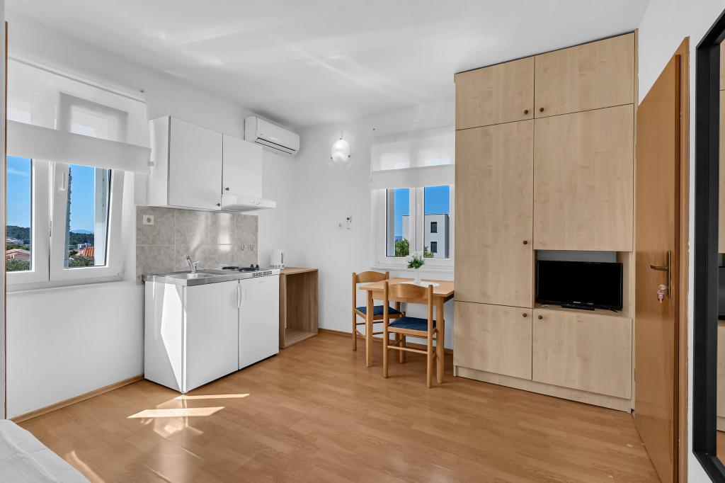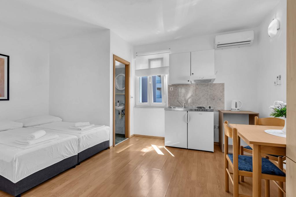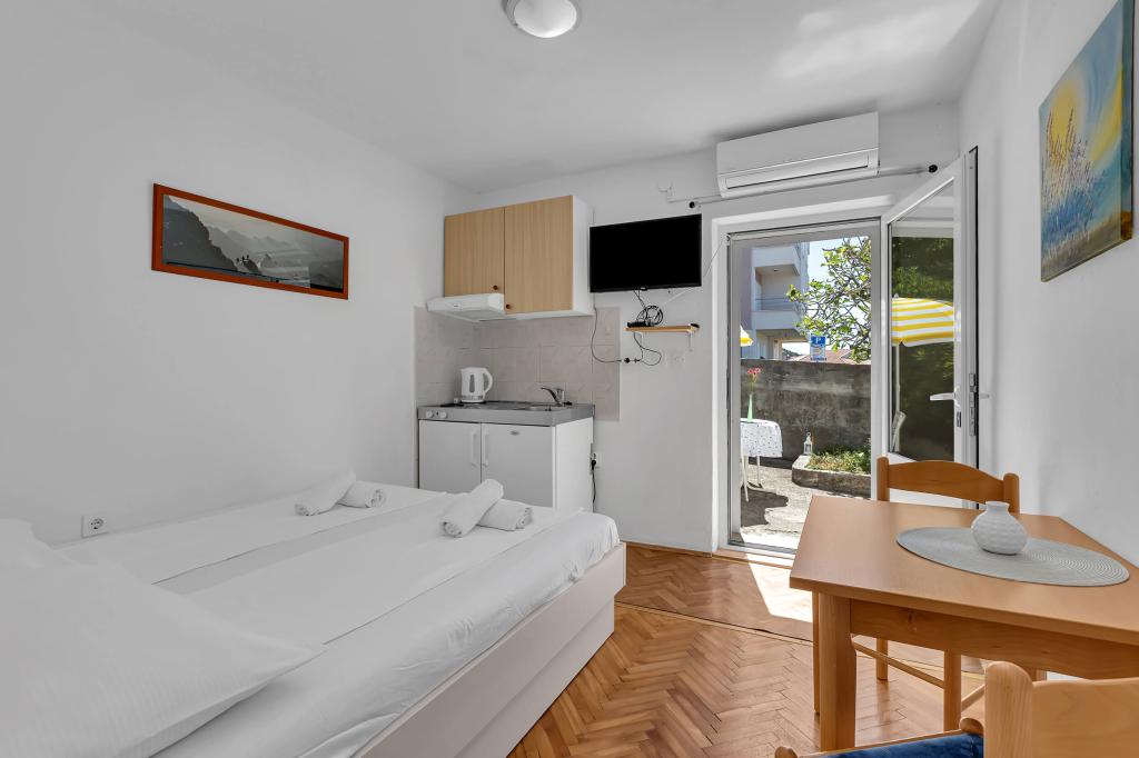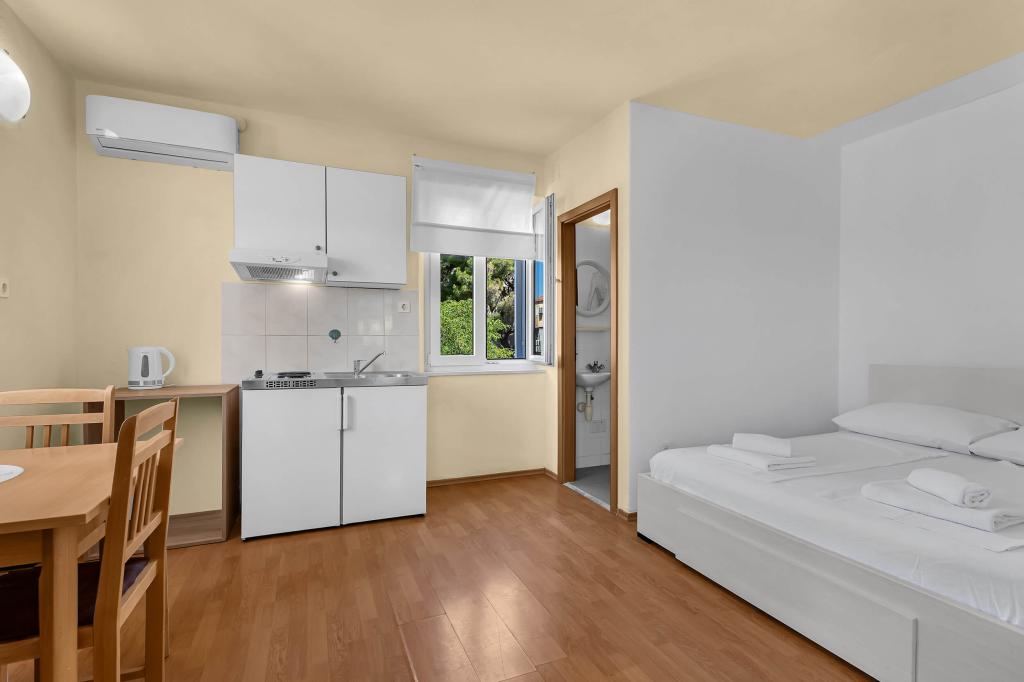 Maison de 4 studios. Située à proximité de toutes les commodités : place principale à 300 m, marché à 300 m, plage à 700 m et promenade principale (riva à 350 m).