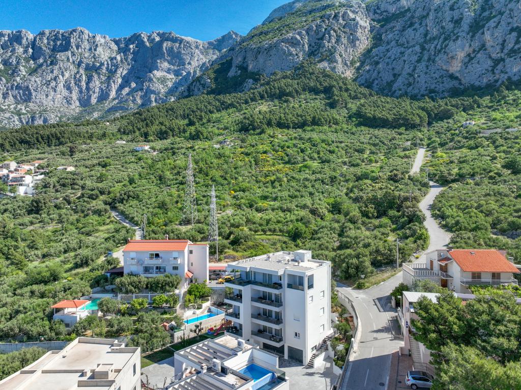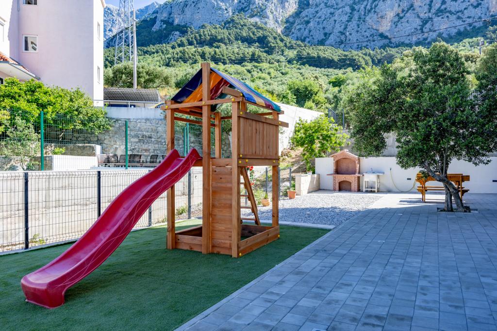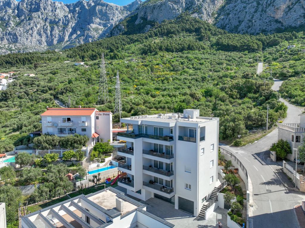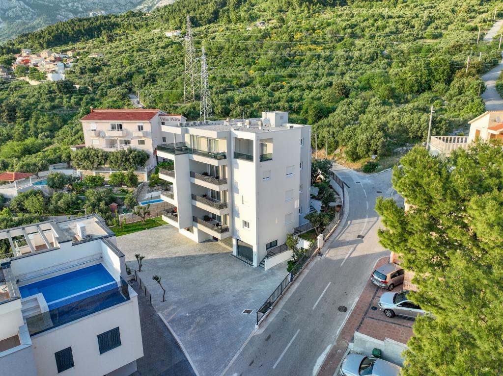 Les appartements Villa Frane sont situés à Makarska, dans un quartier calme et bien entretenu, sur une douce colline surplombant la ville. À seulement 10 minutes à pied du centre-ville pittoresque, leur emplacement offre un équilibre parfait : suffisamment calme pour se détendre, tout en étant proche de toutes les commodités que Makarska a à offrir. Le parking gratuit près de la plage est inclus dans le prix de la location ! Bienvenue dans ces appartements modernes et entièrement équipés de deux chambres, parfaits pour les familles, les couples ou les groupes d'amis qui souhaitent un hébergement confortable dans l'une des plus belles destinations de l'Adriatique. La résidence se situe à environ 1,5 km au-dessus du centre, offrant à ses hôtes calme, intimité et une vue magnifique sur les environs. Vous bénéficierez également d'équipements supplémentaires pour un séjour encore plus agréable : ascenseur, parking extérieur pour chaque appartement, aire de jeux pour enfants idéale pour les plus jeunes, barbecue commun pour se retrouver entre amis et profiter du plein air. Le choix idéal pour vos vacances à Makarska. Le parking gratuit près de la plage est inclus dans le prix de la location !
