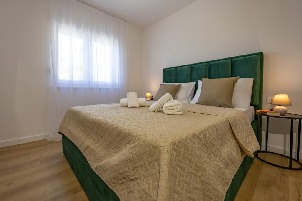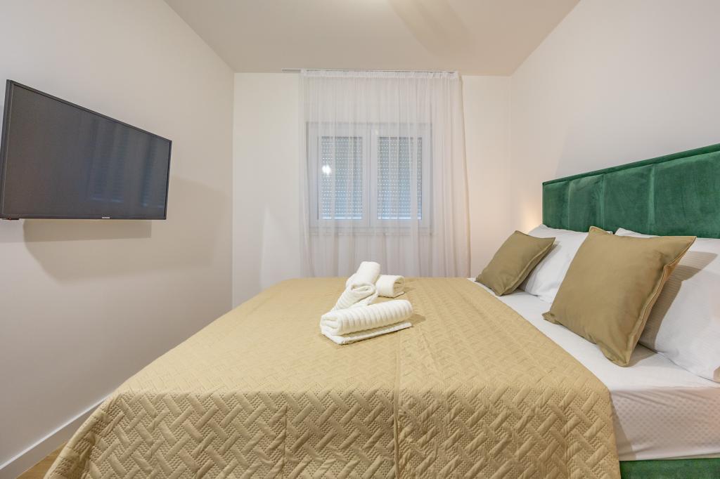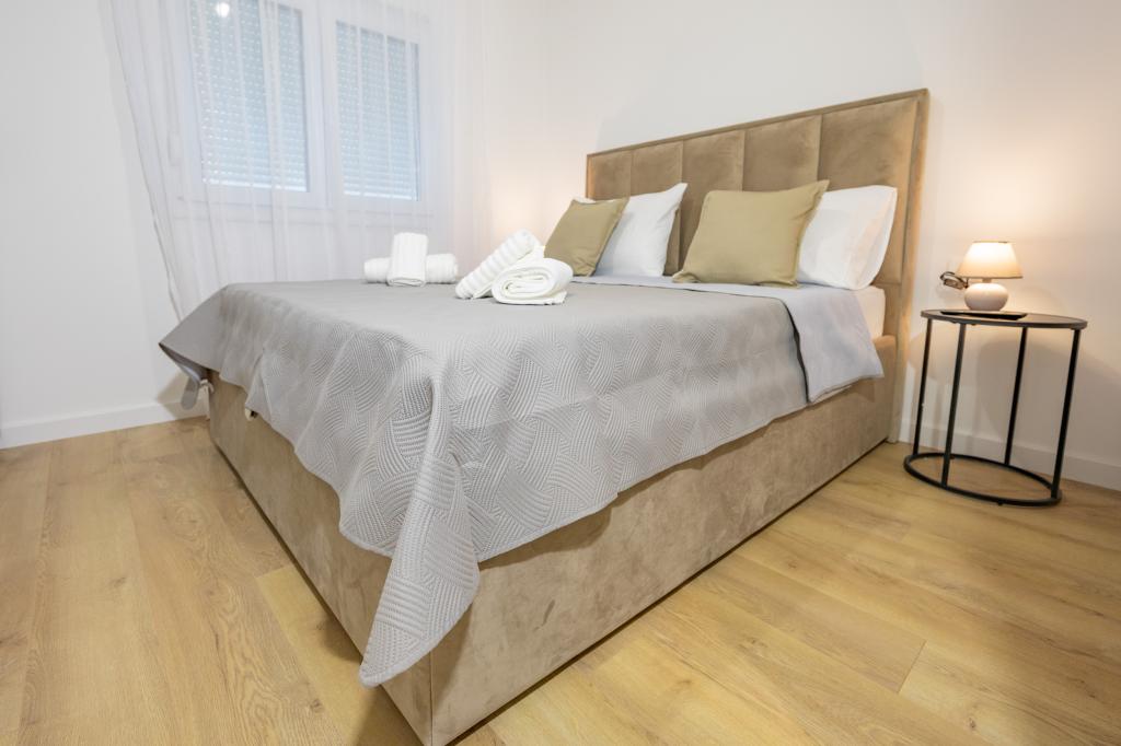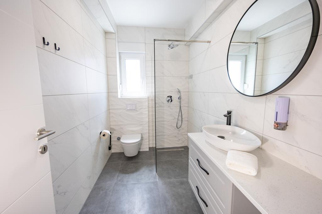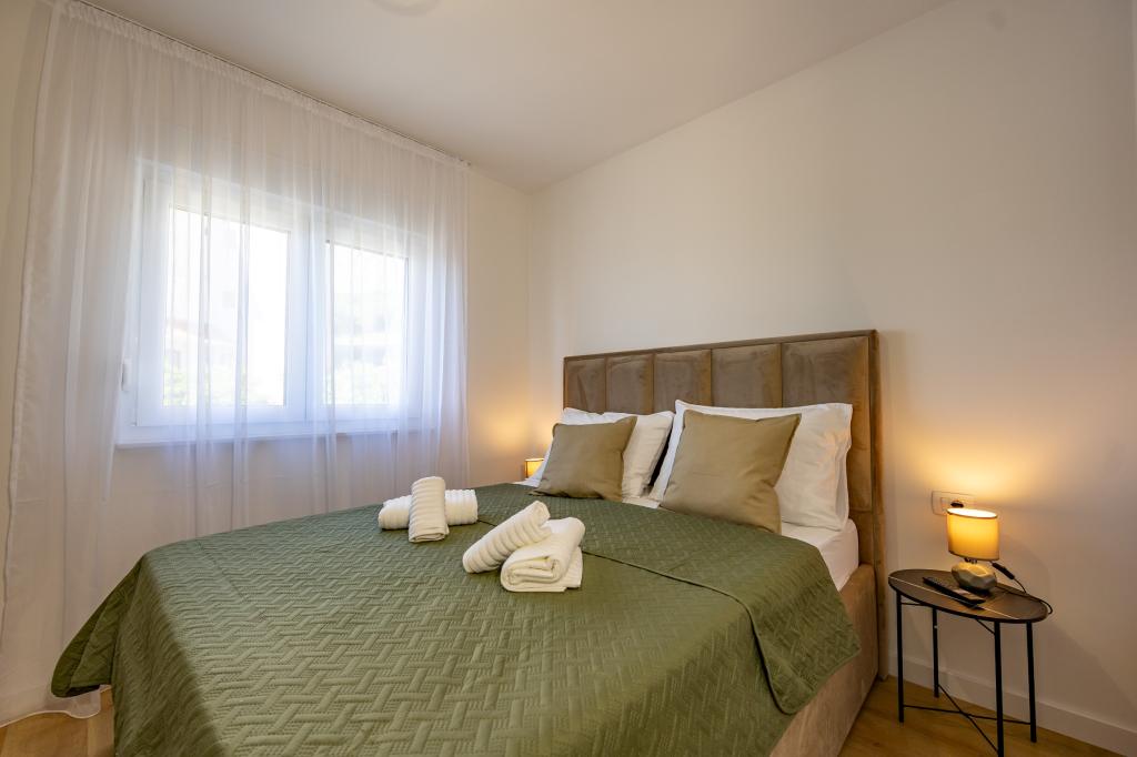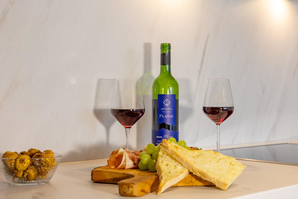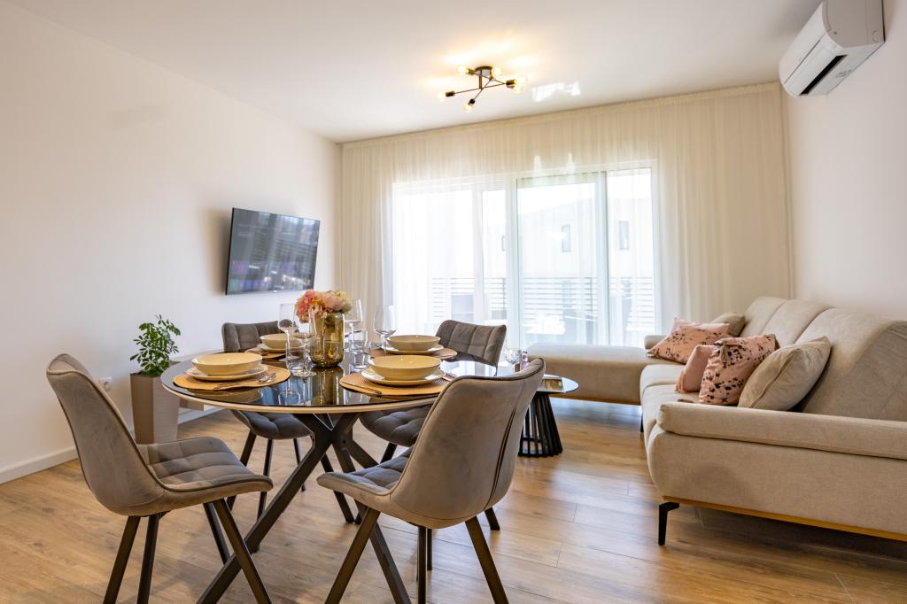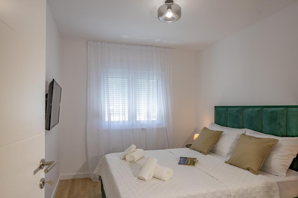 Chaque appartement arbore un design moderne et un intérieur récemment rénové. Dans le spacieux séjour, décoré avec goût et agrémenté de détails contemporains, vous vous sentirez comme chez vous. L'espace ouvert relie harmonieusement le séjour à une cuisine entièrement équipée, où vous attendent d'élégants plans de travail, des appareils électroménagers de qualité et tout l'espace nécessaire pour préparer vos plats préférés. Le séjour s'ouvre sur un agréable balcon, lieu idéal pour savourer un café le matin ou se détendre en soirée avec un verre de vin et un coucher de soleil inoubliable sur l'Adriatique. Chaque appartement dispose de deux chambres confortables avec lits doubles, équipées de linge de lit moelleux et de nombreux rangements, d'une salle de bain moderne et de toilettes séparées. Les appartements sont climatisés et entièrement équipés : télévision par satellite, internet, lave-linge, lave-vaisselle, cafetière et tout le nécessaire pour un séjour confortable et sans souci. Le parking gratuit à proximité de la plage est inclus dans le prix de la location !