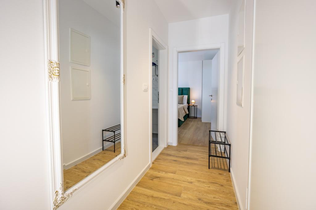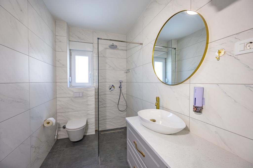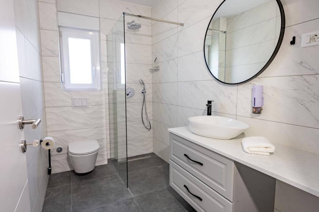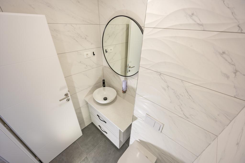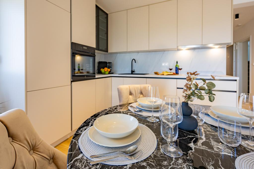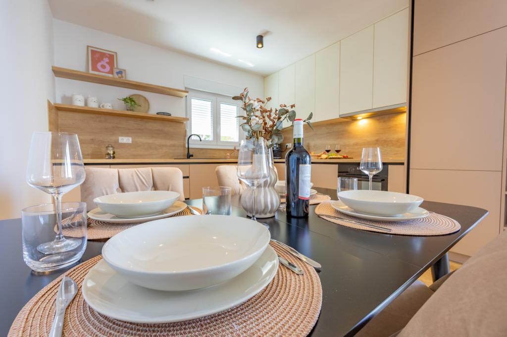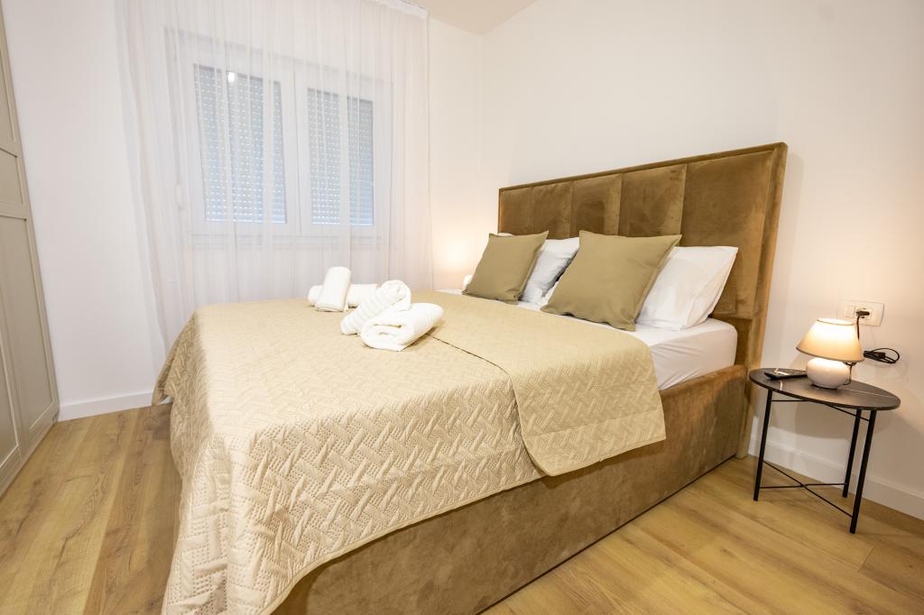 Chaque appartement arbore un design moderne et un intérieur récemment rénové. Dans le spacieux séjour, décoré avec goût et agrémenté de détails contemporains, vous vous sentirez comme chez vous. L'espace ouvert relie harmonieusement le séjour à une cuisine entièrement équipée, où vous attendent d'élégants plans de travail, des appareils électroménagers de qualité et tout l'espace nécessaire pour préparer vos plats préférés. Le séjour s'ouvre sur un agréable balcon, lieu idéal pour savourer un café le matin ou se détendre en soirée avec un verre de vin et un coucher de soleil inoubliable sur l'Adriatique. Chaque appartement dispose de deux chambres confortables avec lits doubles, équipées de linge de lit moelleux et de nombreux rangements, d'une salle de bain moderne et de toilettes séparées. Les appartements sont climatisés et entièrement équipés : télévision par satellite, internet, lave-linge, lave-vaisselle, cafetière et tout le nécessaire pour un séjour confortable et sans souci. Le parking gratuit à proximité de la plage est inclus dans le prix de la location !