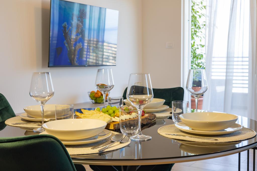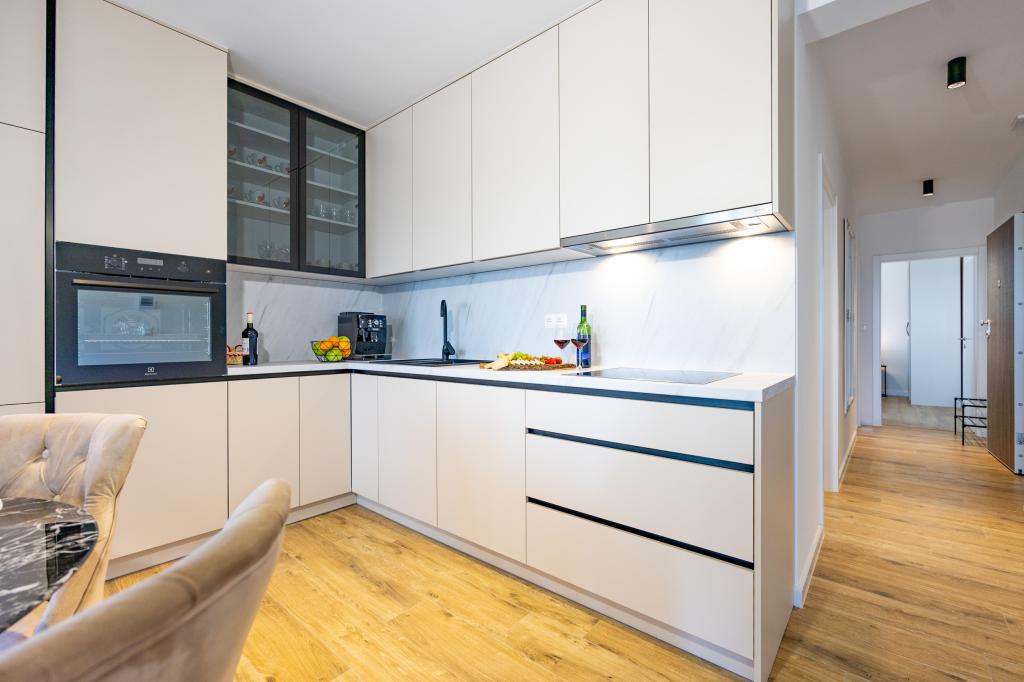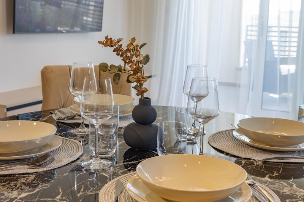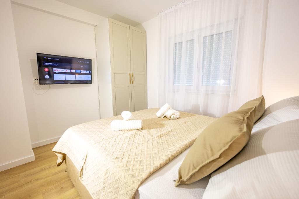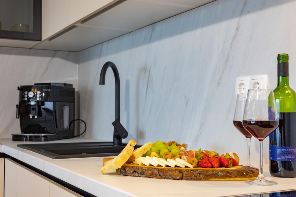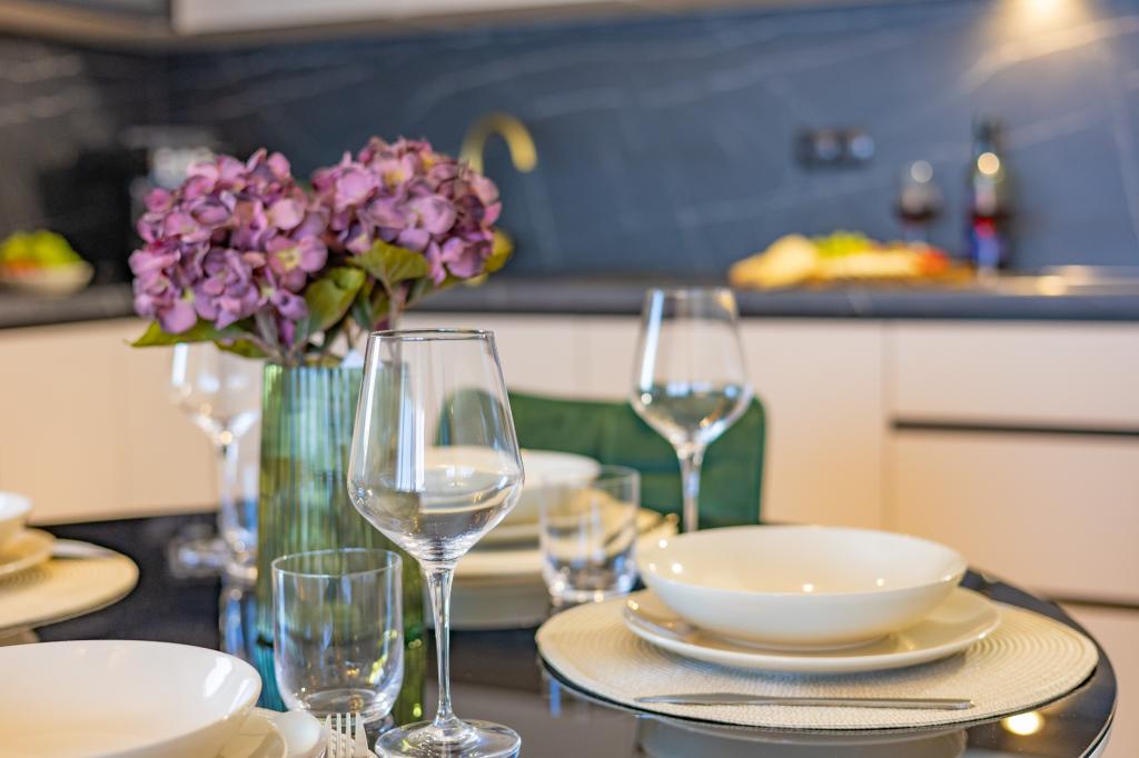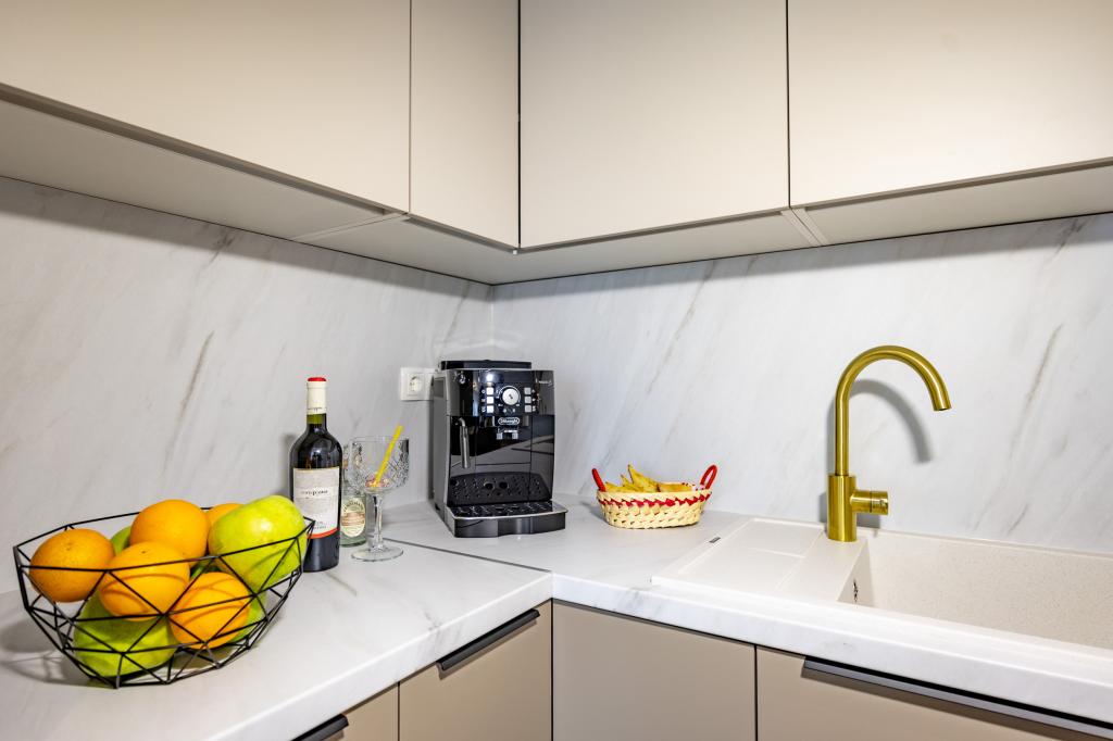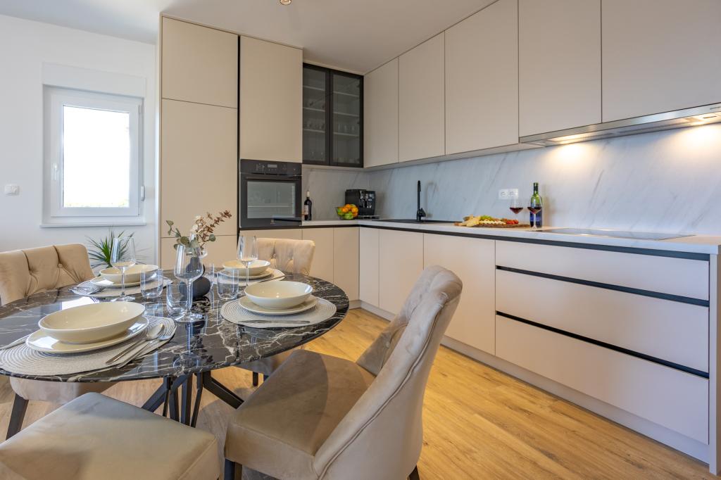 Chaque appartement arbore un design moderne et un intérieur récemment rénové. Dans le spacieux séjour, décoré avec goût et agrémenté de détails contemporains, vous vous sentirez comme chez vous. L'espace ouvert relie harmonieusement le séjour à une cuisine entièrement équipée, où vous attendent d'élégants plans de travail, des appareils électroménagers de qualité et tout l'espace nécessaire pour préparer vos plats préférés. Le séjour s'ouvre sur un agréable balcon, lieu idéal pour savourer un café le matin ou se détendre en soirée avec un verre de vin et un coucher de soleil inoubliable sur l'Adriatique. Chaque appartement dispose de deux chambres confortables avec lits doubles, équipées de linge de lit moelleux et de nombreux rangements, d'une salle de bain moderne et de toilettes séparées. Les appartements sont climatisés et entièrement équipés : télévision par satellite, internet, lave-linge, lave-vaisselle, cafetière et tout le nécessaire pour un séjour confortable et sans souci. Le parking gratuit à proximité de la plage est inclus dans le prix de la location !