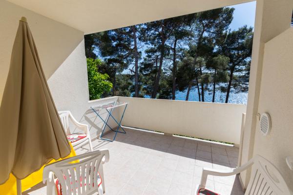 L'appartement est très propre et bien rangé, et la vue depuis la terrasse est magnifique. Quant à l'hôte, tous les éloges, extrêmement gentil, accessible et prêt à aider. Ils nous ont donné des "directives" très utiles sur ce qu'il faut visiter, où manger, etc. Disponible à tout moment et prêt à discuter. La piscine du logement est toujours disponible, la température de l'eau est agréable et l'environnement est calme. La plage en contrebas du logement est également calme, il y a des places et elle est très proche. Notre recommandation est de prendre des vélos afin d'explorer pleinement l'île, tout est à proximité en vélo, il y a aussi des sentiers pour les cyclistes, et vous pouvez également trouver de nombreuses plages cachées.
