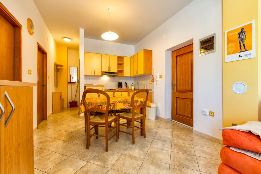 Trois appartements entièrement équipés sont à votre disposition. L'appartement 1 pour quatre personnes est situé au rez-de-chaussée, l'appartement 2 également pour quatre personnes est situé au deuxième étage, ainsi que l'appartement 3 pour deux personnes. Le prix de l'appartement comprend des avantages supplémentaires gratuits : gratuité pour un enfant de moins de 3 ans, barbecue dans la cour, utilisation du lave-linge dans la buanderie commune au rez-de-chaussée, où vous trouverez une planche et un fer à repasser. Le jour de votre départ, nous proposons un service de consigne à bagages pour les clients qui quittent l'île plus tard, ainsi qu'un service de transport vers la gare routière et le port de ferry de Mali Lošinj. Un parking est disponible devant la maison, et la cour dispose d'un espace pour vélos, motos… Suppléments : ménage de fin de séjour (40 €) et animaux de compagnie sur demande (avec supplément). Nous serons heureux de répondre rapidement et professionnellement à tous vos besoins, demandes et souhaits avant votre arrivée et pendant votre séjour.