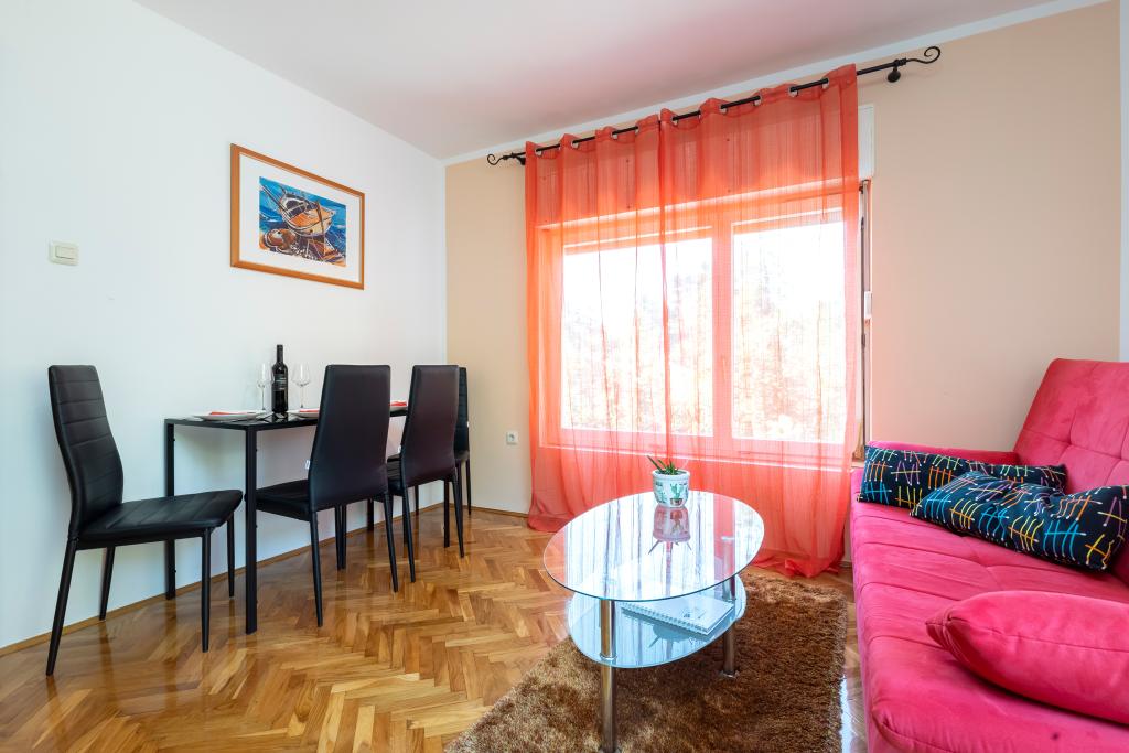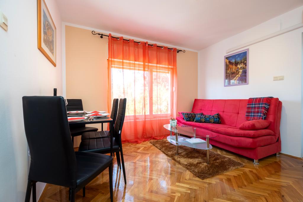 Les appartements Mia sont situés dans un quartier calme de la ville avec une belle vue et un coucher de soleil. Parking privé et espace pour remorques devant la maison. Ils sont entièrement équipés et confortables. Bienvenue😊
