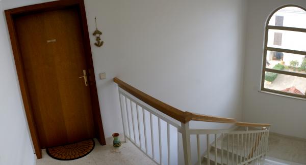 L'appartement Alba est un appartement de deux étages (100 m2) au deuxième étage d'un immeuble résidentiel et est situé dans un quartier calme de Malinska, à proximité des plages, des magasins, des restaurants et d'autres installations. La propriété dispose de 3 chambres spacieuses, d'une salle de bains, de toilettes séparées, d'un salon, d'une cuisine entièrement équipée avec une salle à manger et d'une terrasse couverte avec vue sur le Kvarner. Plusieurs plages sont situées non loin de l'appartement (à 4 minutes à pied), dont Malin, Dub et Cuklićevo. L'appartement est décoré de façon moderne et entièrement équipé: 3 climatiseurs, TV LCD SAT, Internet WiFi, cafetière, lave-vaisselle et lave-linge, micro-ondes, lit bébé sur demande, etc. Les clients disposent d'une place de parking devant le bâtiment. Jusqu'à 7 personnes peuvent séjourner dans l'appartement.