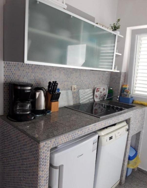 A 70m de la plage. Bel appartement dans un excellent emplacement près de la mer. Cuisine avec lave-vaisselle, une chambre avec un lit double, une autre chambre avec deux lits simples, 2 climatiseurs, TV satellite, Wi-Fi, parking, enregistrement des clients. Tout est inclus dans le prix. Proximité de la plage 70m, petit commerce 50m, aire de jeux pour enfants 60m, restaurant 70m, pistes cyclables, promenade en bord de mer. A proximité se trouvent un centre de bien-être, une piscine, une location de bateaux, de vélos et de motos.