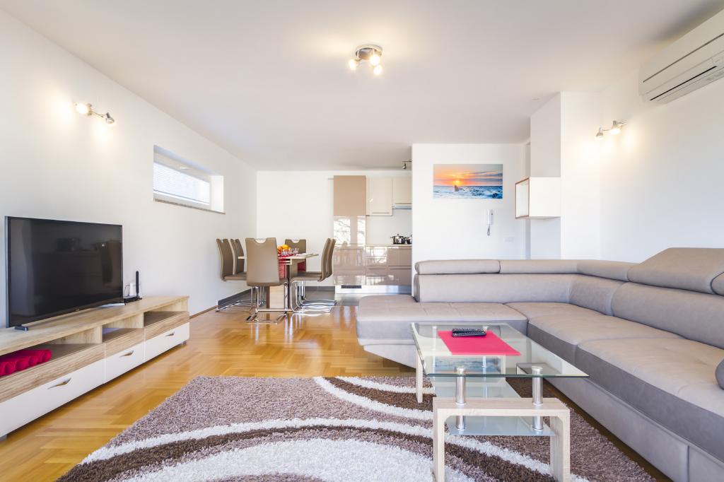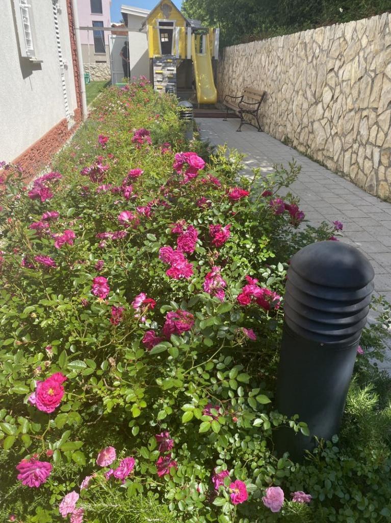 L'immeuble Villa Futura est situé à quelques minutes à pied de la plage de galets de Rova, dans un endroit calme, dans une impasse. L'appartement mesure 100 m2 et dispose de trois chambres (doubles), de deux salles de bains (une avec douche et une avec baignoire). La cuisine est reliée à la salle à manger et au salon et au balcon ou à la terrasse. A côté de la maison se trouve un plus grand parking couvert et une plus petite piscine avec transats pour bronzer. Il y a un barbecue au charbon de bois extérieur à côté de la piscine. Il y a une aire de jeux pour les enfants dans le jardin. Nous proposons l'hébergement et le transport aux randonneurs de Camina KRK.