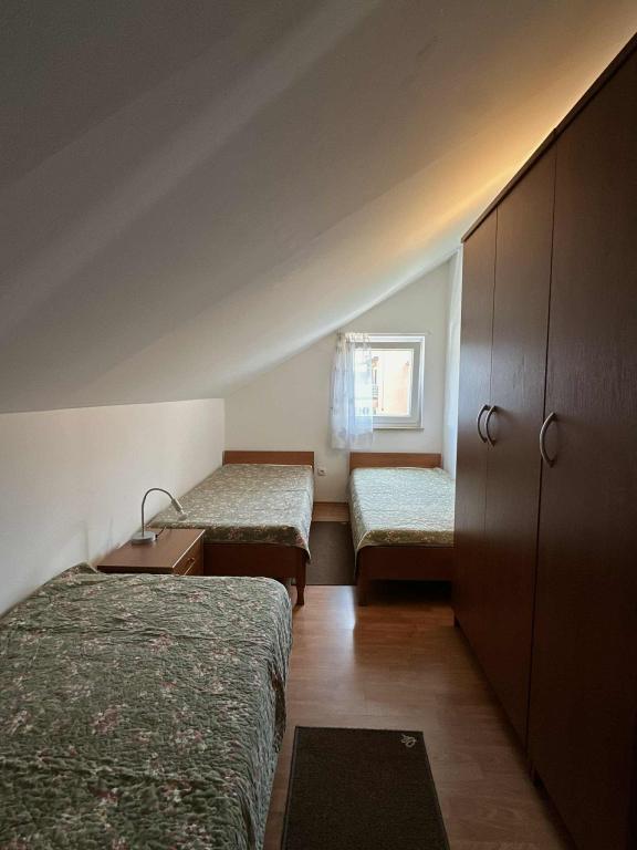 La maison est située à Vantacici, à 3 km de la ville. Vantacici est une petite station touristique située sur la côte nord-ouest de l'île dans une grande baie boisée. La maison est loin de la mer et 120m à la plage peut être atteint dans un maillot de bain. La plage a beaucoup et peut être choisi parmi le gravier et la plage en béton. Près de la maison il y a un magasin d'épicerie (100 m), pizzeria (50 m), un café (100m). Dans le village Porat (environ 500m) est voisin quelques très bons restaurants et bien connus avec l'offre riche de poissons et d'autres spécialités. Environ 3 km de la maison il y a plusieurs grands centres commerciaux avec une offre riche. Vantačić dispose également d'un port de plaisance (300 m), ainsi que Porat et Malinska. Toutes les autres offres intéressantes pour les visiteurs se trouve à Malinska: banques, bureaux de change, bureaux de poste, le marché, de nombreux magasins et restaurants, animations pour les enfants (parc d'attractions et trampoline).