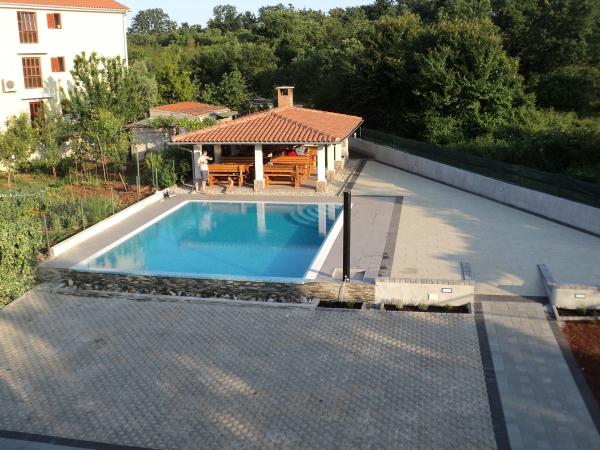 Notre maison est située dans Vantačići, sur l'île de Krk. La mer est à 400 mètres, et des commerces et des restaurants sont également situés à proximité. La maison dispose de 6 appartements, qui sont classées avec 3 *** pour accueillir 3:00-6:00 appartement osoba.Svaki dispose d'une cuisine entièrement équipée avec salle à manger et salon, soude une ou deux chambres, salle de bains avec WC, télévision par satellite, wi-fi gratuit, de la climatisation et d'un balcon ou d'une terrasse privée. La maison est entièrement clôturé et places de stationnement sécurisées pour tous partie apartmane.U de la parcelle de 3000 m2 est une aire de jeux, un endroit pour le badminton, belvédère couvert avec un barbecue, des tables et des bancs, la piscine avec terrasse. L'environnement idéal pour les familles en quête de loisirs et de vacances sans soucis.