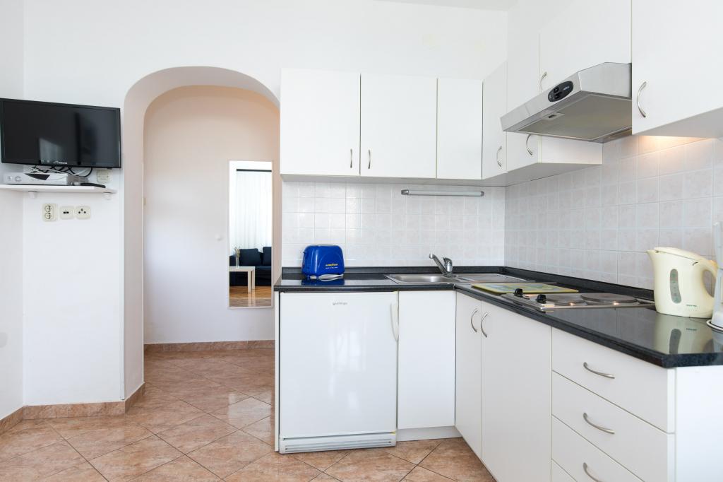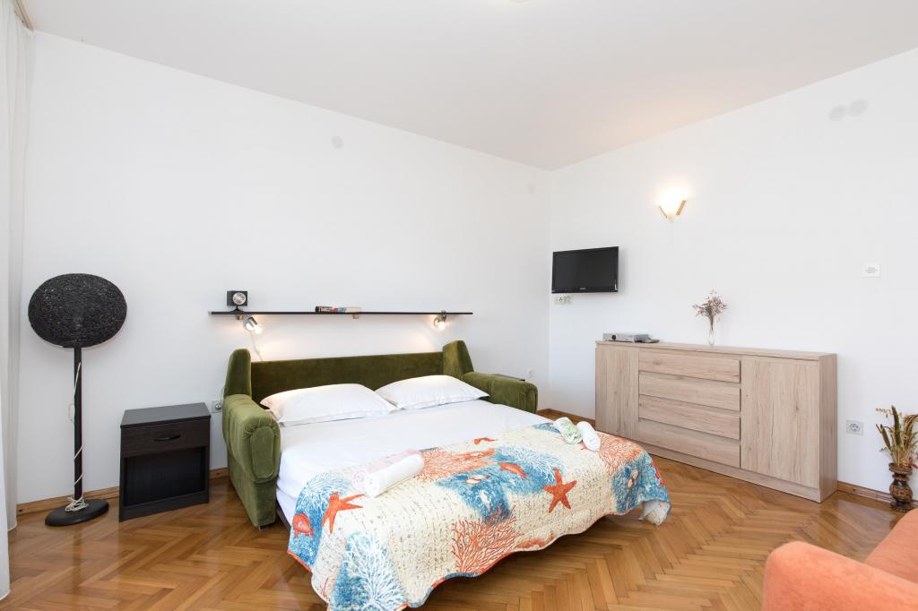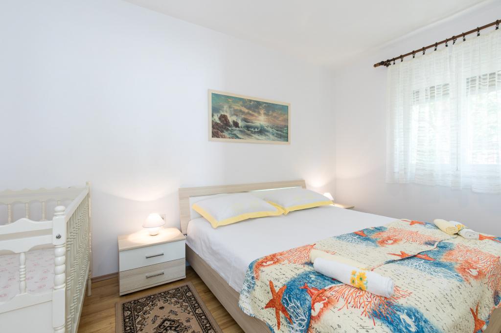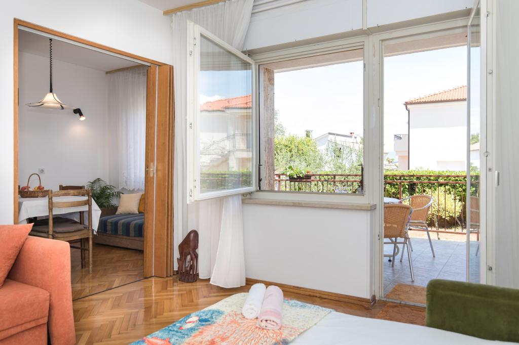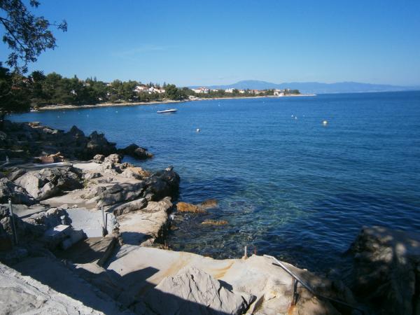 Les appartements sont situés dans la petite ville tranquille de Vantačići, à 2 km de Malinska, accessible par une belle promenade le long de la côte. De plus, le même sentier mène de l'autre côté au petit village de pêcheurs de Porat, à 1 km de Vantačić. Chaque appartement a sa propre terrasse (10 m2 et 15 m2), et ils sont situés au rez-de-chaussée de l'immeuble. Dans le jardin il y a un barbecue, des meubles de jardin, une douche extérieure et un parking pour les voitures. Le parking est protégé du soleil par une canopée de kiwis et de vignes. La mer est à 100 mètres de l'appartement et un chemin de sable y mène. Un restaurant, une pizzeria et des bars de plage sont situés sur la côte à Vantačići. Porat dispose d'une offre gastronomique riche (restaurant de poisson, pizzeria, grill).