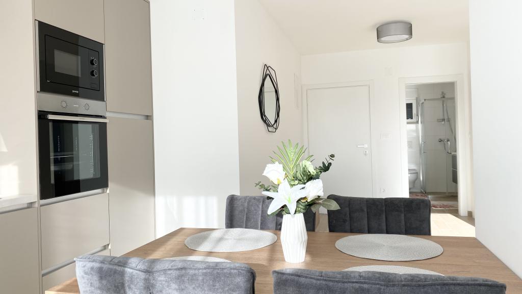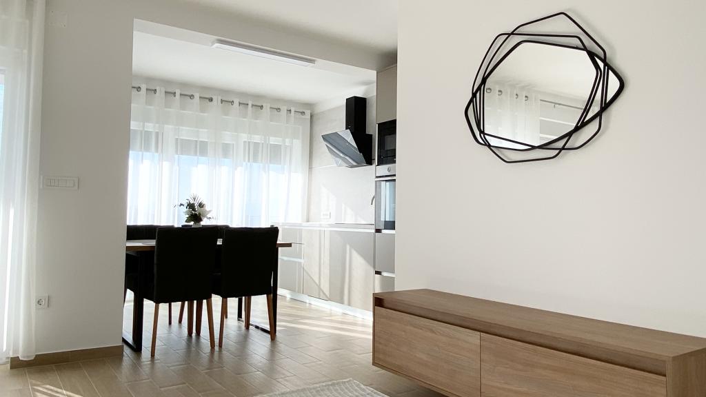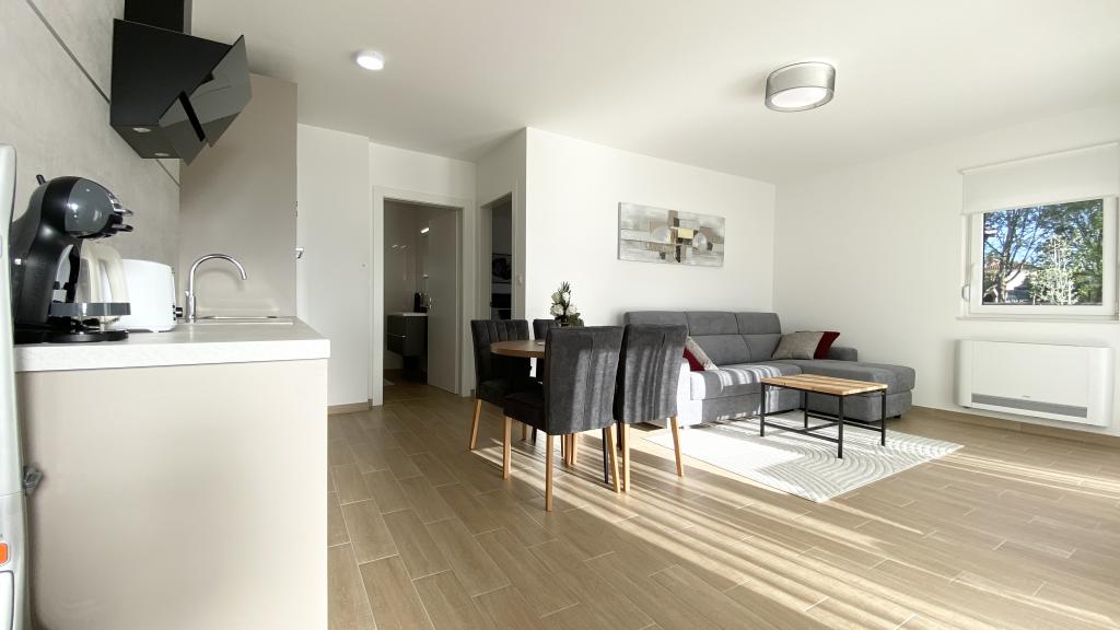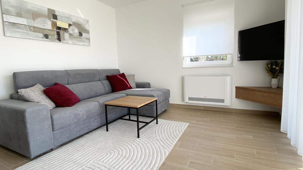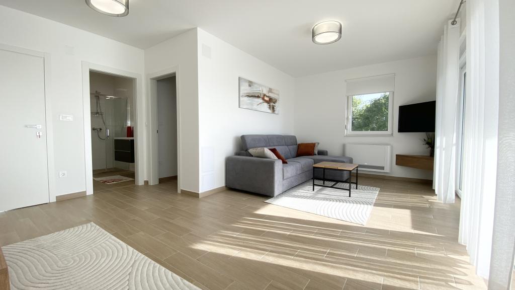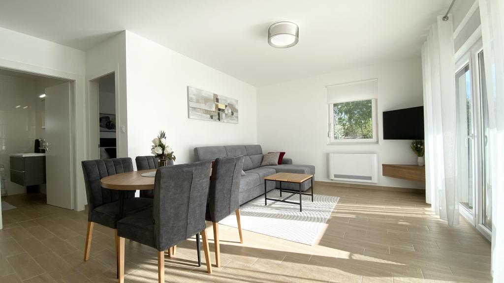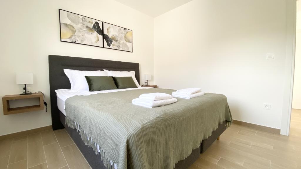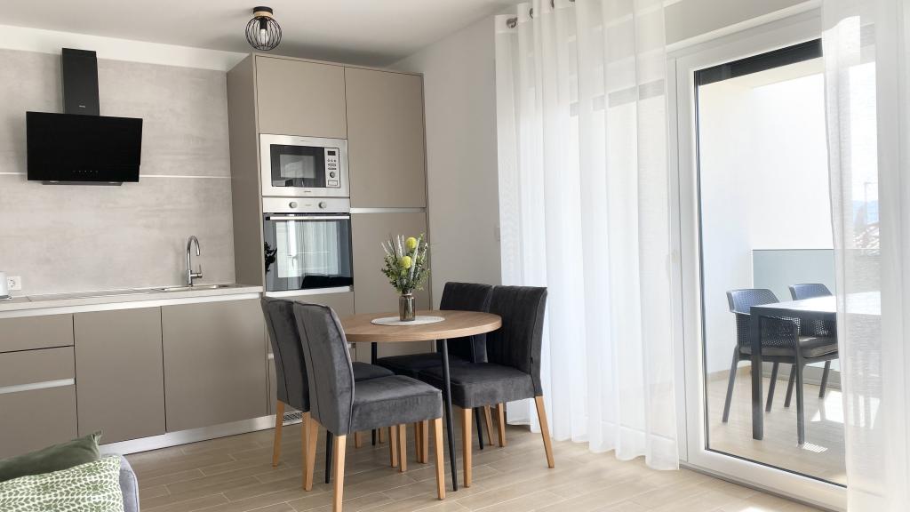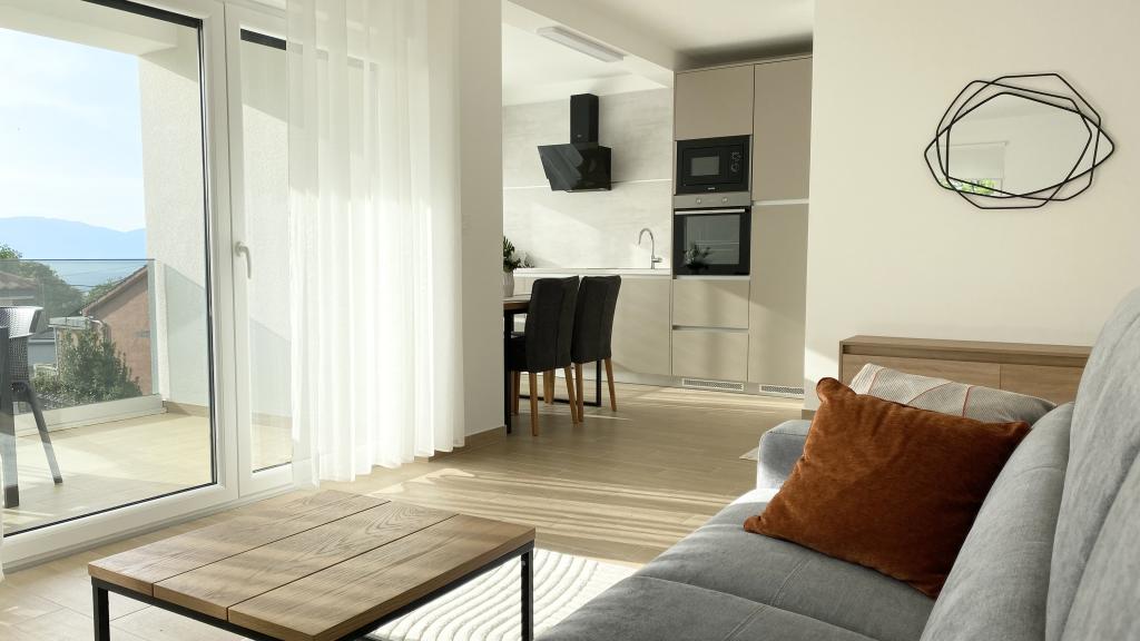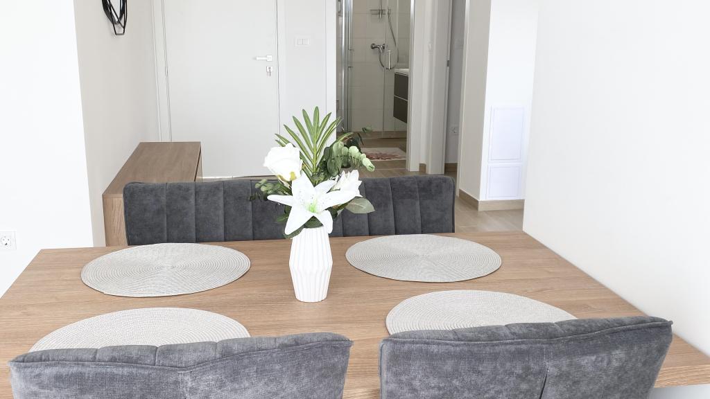La Villa Malina est une résidence neuve située dans un quartier calme du village. Elle propose trois appartements modernes de 50, 55 et 60 m² avec entrées indépendantes et parking sécurisé dans la cour. Chaque appartement comprend un séjour, une chambre, une salle de bains, une cuisine et une terrasse couverte. Le séjour est équipé d'un canapé-lit pouvant accueillir deux personnes supplémentaires. La cuisine est entièrement équipée : vaisselle, torchons, four, micro-ondes, réfrigérateur-congélateur, bouilloire, plaques électriques, grille-pain et lave-vaisselle. Vous bénéficierez également d'une connexion internet, de la climatisation dans chaque pièce, d'un aspirateur, d'un lave-linge, d'un sèche-cheveux et de moustiquaires à toutes les fenêtres. Un lit bébé est disponible gratuitement sur demande. Une réduction de 10 % est offerte pour tout séjour de 10 jours ou plus.