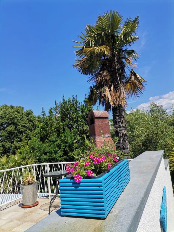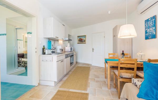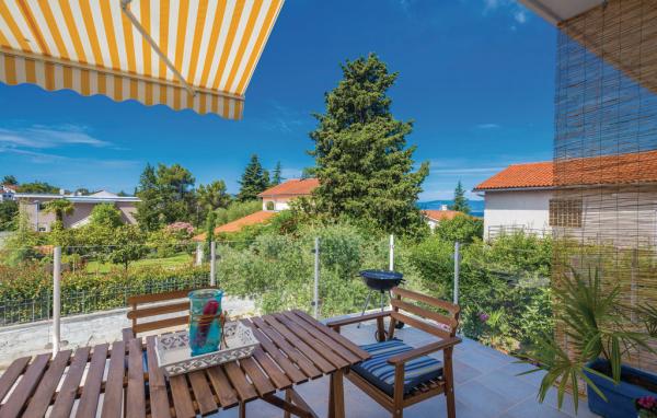 L'appartement est situé au premier étage d'une maison familiale dans un quartier calme de Malinska. La maison est entourée de verdure, le centre et les commerces sont proches (environ 10 minutes à pied). L'appartement se compose d'une chambre à coucher (lit double supplémentaire), salle de séjour avec cuisine, salle de bain et grande terrasse. Parking sécurisé dans la cour.