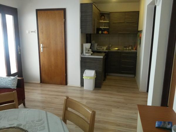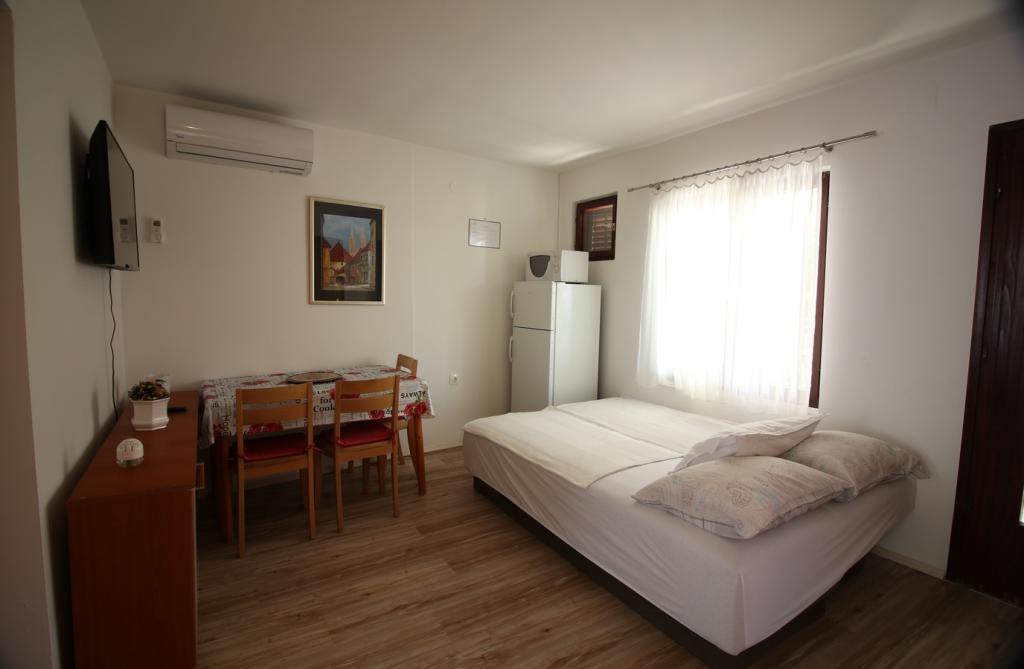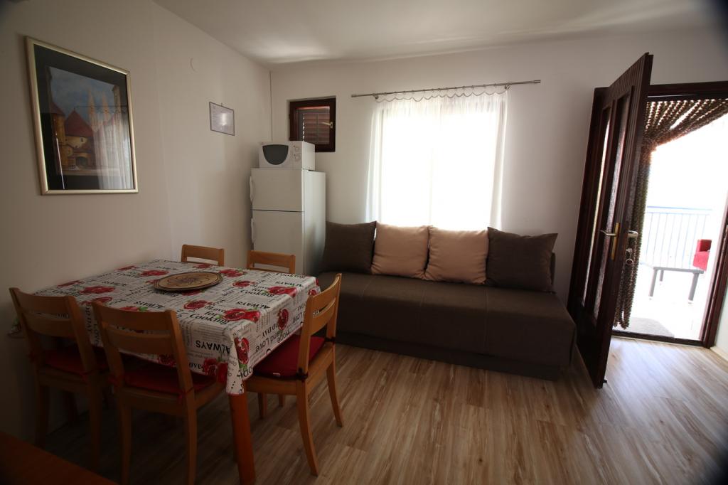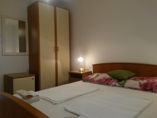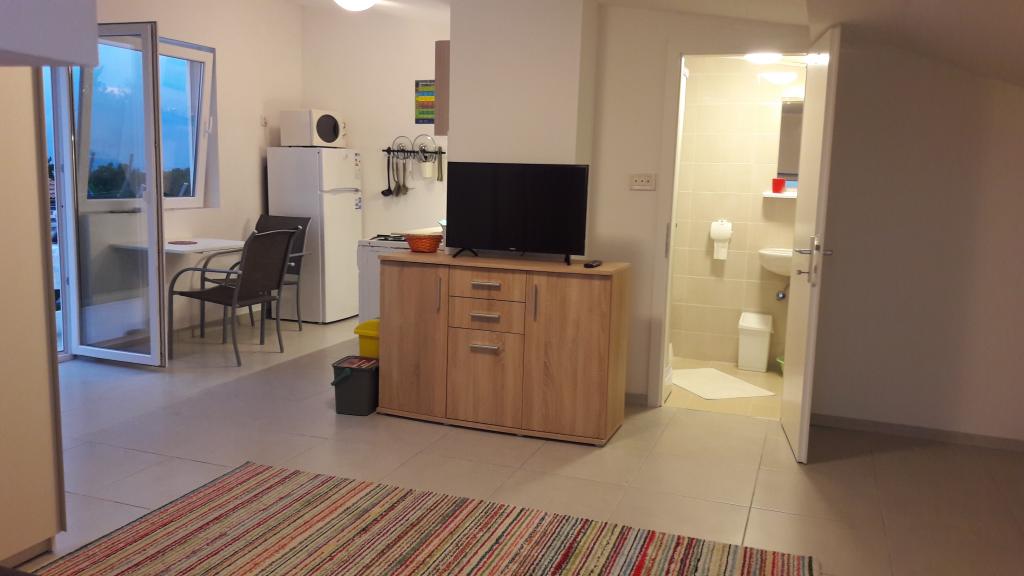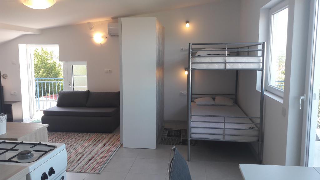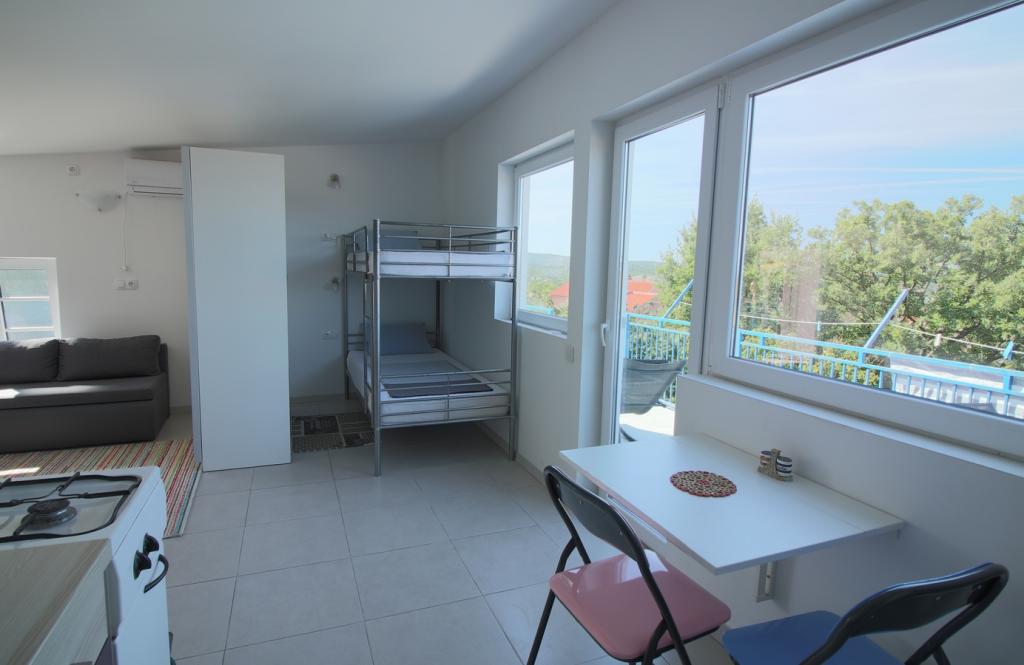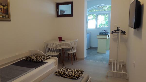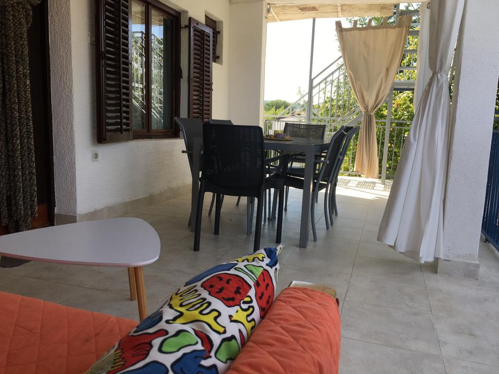 Dans un quartier calme de Sveti Vid, une maison mitoyenne privée propose des appartements fonctionnels pour 2 à 6 personnes. Chaque appartement dispose d'une terrasse privative. Les propriétaires habitent au rez-de-chaussée. La cour est aménagée avec une grande table, des bancs et un barbecue. Le parking se trouve également dans la cour. Le centre de Malinska est à 15 minutes et la plage à 20 minutes à pied. La région regorge de belles plages, de promenades en bord de mer et de pistes cyclables. Pour les amateurs de divertissement, la discothèque Diamant est à proximité (environ 2 km). La climatisation, la taxe de séjour, l'enregistrement, le ménage de fin de séjour, la télévision par satellite, le linge de lit, les serviettes, les torchons, les produits d'entretien, les éponges, le papier toilette et le savon sont inclus dans le prix. Le parking et le Wi-Fi sont gratuits. FRAIS SUPPLÉMENTAIRES : - Animal de compagnie : 5 €/jour (1 chien) - Blanchisserie : 3 € - Chauffage : de 4 à 6 €/jour - Supplément de 30 % pour une nuit supplémentaire - À partir du 10 juillet. Jusqu'au 25 août. Un séjour minimum de 7 nuits est possible, sauf pour combler les intervalles entre deux réservations. Du 1er au 9 juillet et du 25 au 31 août, un séjour minimum de 5 nuits est possible.
