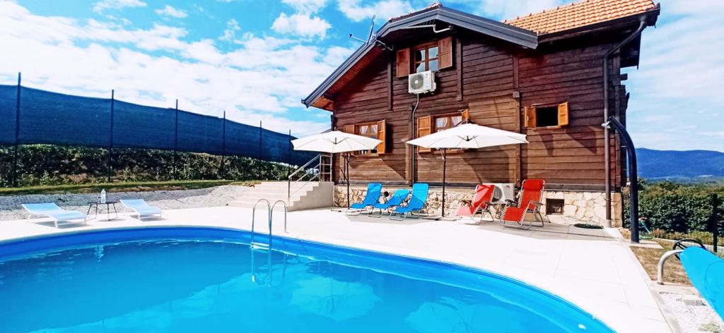 L'Holiday Home King's Lodge est une maison en bois de chêne située à Hrvatsko Zagorje avec vue sur la montagne Ivanščica... A votre disposition : - 3 chambres séparées - 2,5 salles de bains - salon spacieux avec cheminée - sauna - barbecue avec terrasse couverte - pièce pour socialiser et jouer (fléchettes, billard, PS, jeux de société...) - foyer extérieur - aire de jeux pour enfants - coin enfants et coin lecture