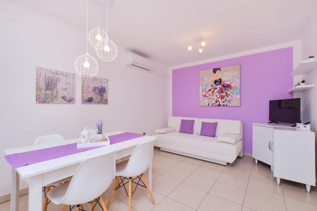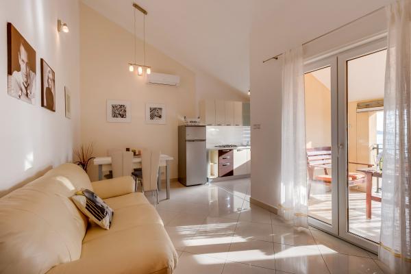 Les trois appartements sont équipés de façon moderne, climatisés, disposent d'une connexion Wi-Fi gratuite, d'une télévision avec antenne parabolique, sont situés à environ 80 m de la plage, disposent de leurs propres terrasses et places de parking. Les plages sont de galets et vous trouverez toujours l'endroit idéal pour vous.