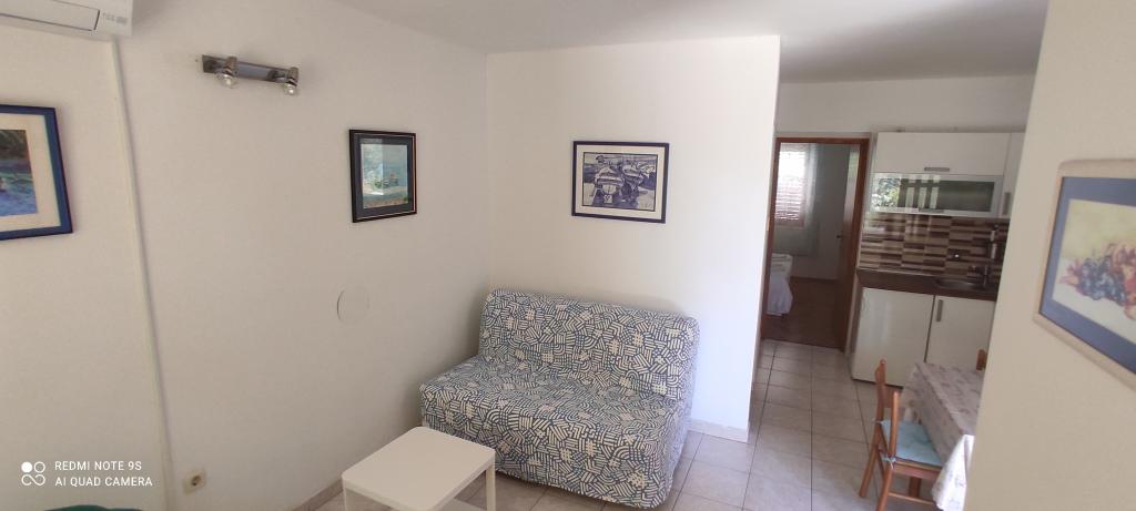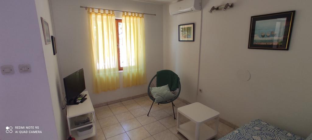 Dans la paisible ville de Miholašćica, connue pour sa belle plage de galets, à 26 km au sud de la ville de Cres, nous vous proposons 2 appartements entièrement équipés de 35 mètres carrés chacun, avec cuisine, salon, salle de bain, chambre et terrasse, et un appartement avec deux chambres, séjour, salle de bain. cuisine et terrasse d'une superficie totale de 55 mètres carrés.Nous mettons à disposition 4 places de parking et une cheminée avec barbecue dans le cadre du jardin. La plage se trouve à environ 100 m de la maison elle-même.