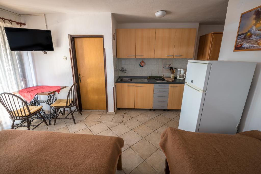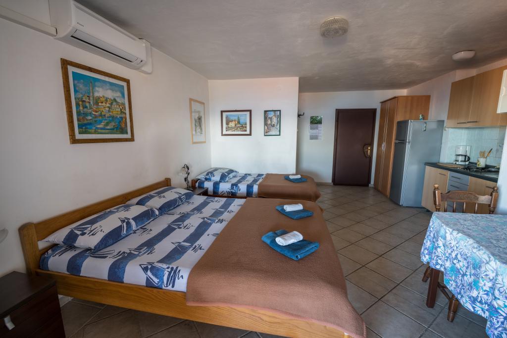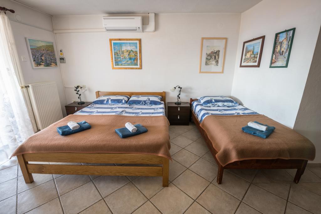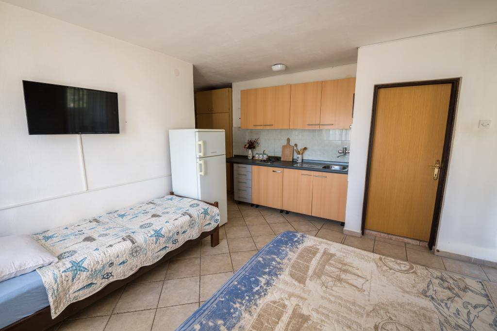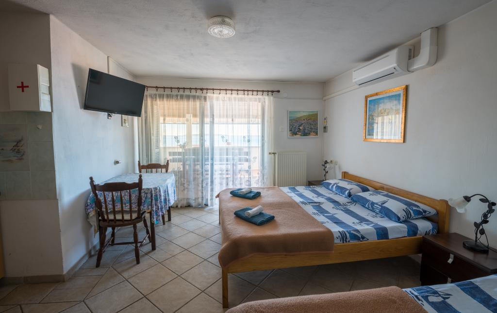 Taxe de sejour est inclus dans le prix.Nos invités Villa Goga propose un parking clôturé gratuit devant la villa, l'utilisation gratuite du Goga Club Grill où les clients peuvent utiliser un gril à gaz ou à bois et choisir l'une des boulangeries où ils peuvent cuire de la viande ou du pain fait maison selon d'anciennes recettes. Le Goga Club Grill est couvert et fermé, il offre donc aux clients la possibilité de socialiser même par temps de pluie. Chaque appartement de la villa dispose d'une cuisine entièrement équipée, de lits meublés avec draps et serviettes, d'une salle de bain avec cabine de douche, lavabo et toilettes.Chaque appartement a sa propre terrasse avec vue sur la mer ou les oliveraies, selon l'emplacement de la De plus, tous les appartements sont des villas couvertes par Internet sans fil, qui est entièrement gratuit pour les clients. NOUVEAU!! Tous les invités de la maison ont accès à la nouvelle borne de recharge pour voitures électriques située dans la cour de la maison. La borne de recharge dispose d'une connexion de type 2 avec une vitesse de charge de 11 KW. L'utilisation est facturée en plus.
