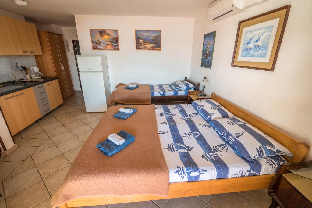 En savoir plus Unités d'hébergementLes réservations se font par e-mail, téléphone ou fax. Nous ne demandons pas d'acompte à nos futurs clients, mais le client paie les services l'avant-dernier ou le dernier jour d'utilisation de l'hébergement Villa Goga. La confirmation de la réservation se fait par téléphone ou par e-mail quelques jours avant l'arrivée, et le jour du départ, l'heure de départ de l'appartement est convenue en fonction de la réservation ou de la liaison par ferry vers le continent. En général, le départ peut varier entre 10h et 14h le dernier jour. Le paiement est expressément en espèces. Notre personnel amical est prêt à répondre à toutes vos demandes et à vous aider à réaliser vos vacances inoubliables. La seule restriction concerne le maintien de l'ordre et de la paix dans la maison. Bienvenue à la Villa Goga !