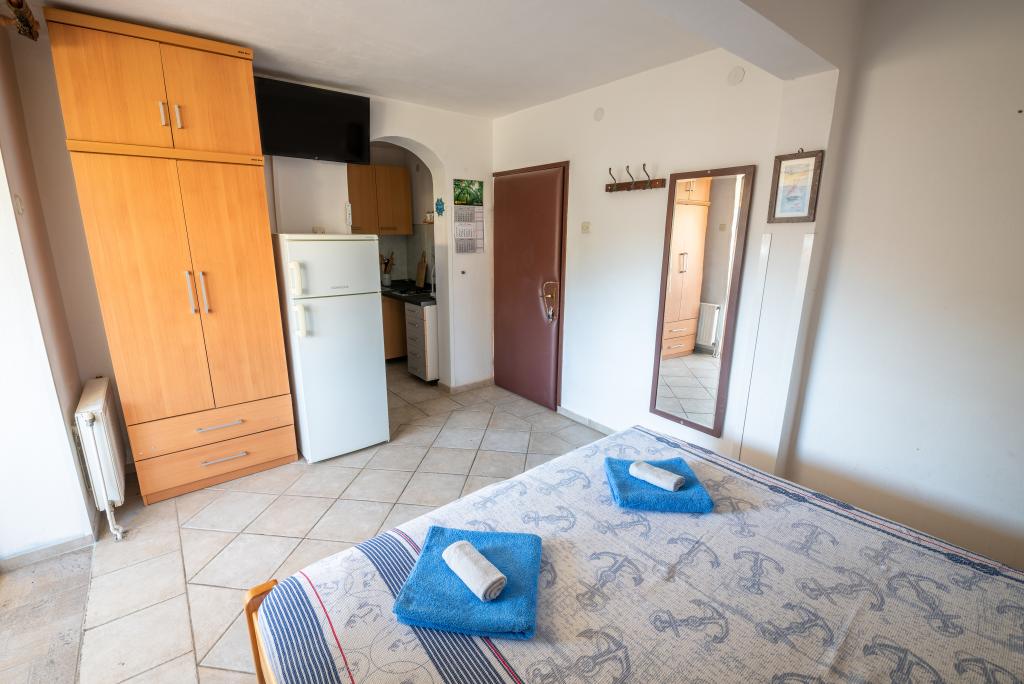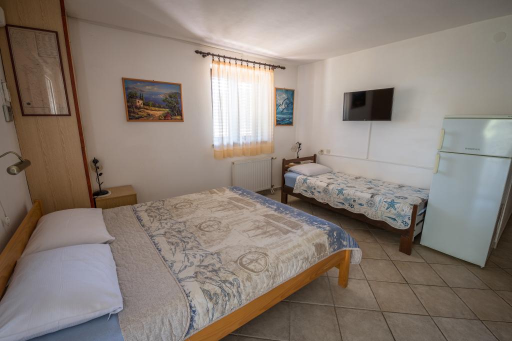 La ville de Miholašćica trouve ses racines dans l'Antiquité romaine. Il est situé sur la partie la plus sauvage de la côte de Cres, à côté d'une baie spacieuse ouverte au sud-ouest. La ville magnifiquement paysagée de Miholašćica et la ville voisine de Martinšćica avec beaucoup de végétation méditerranéenne sont orientées vers le tourisme familial et de camping. Aujourd'hui, Miholašćica est un lieu touristique où, avec vue sur l'île de Žeča, vous éviterez les foules et trouverez vos vacances dans un environnement paisible. En plus de belles plages, la nature intacte offre de grandes opportunités pour un séjour et des vacances actifs et de qualité. Les appartements Villa Goga sont situés en plein centre de Miholašćica, à seulement 5 minutes à pied de la plage. Dans le quartier à 300 m soit 10 minutes à pied, il y a 2 restaurants, un supermarché et une agence de tourisme. La plage naturelle de galets et la mer limpide offrent une expérience inoubliable pour vos petits et des vacances irremplaçables pour les adultes. Il y a un bar directement sur la plage où vous pourrez vous rafraîchir avec une boisson fraîche ou divertir les enfants avec des glaces parmi le large choix.