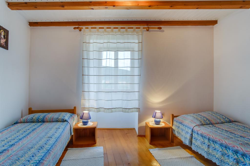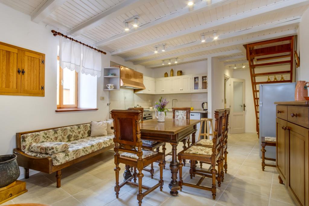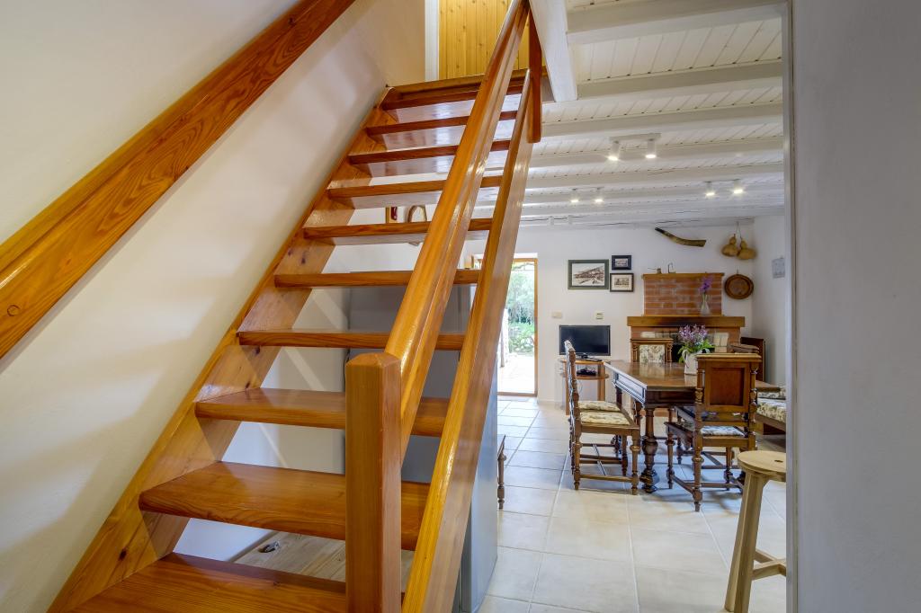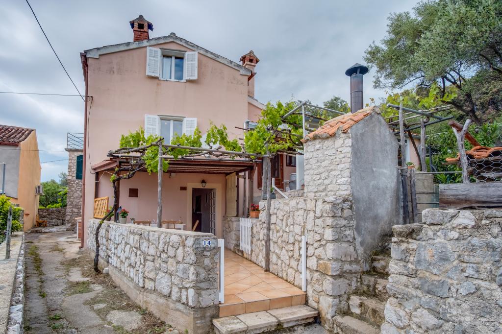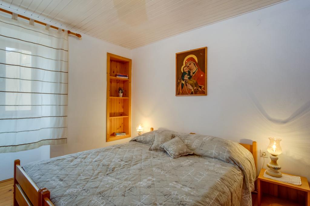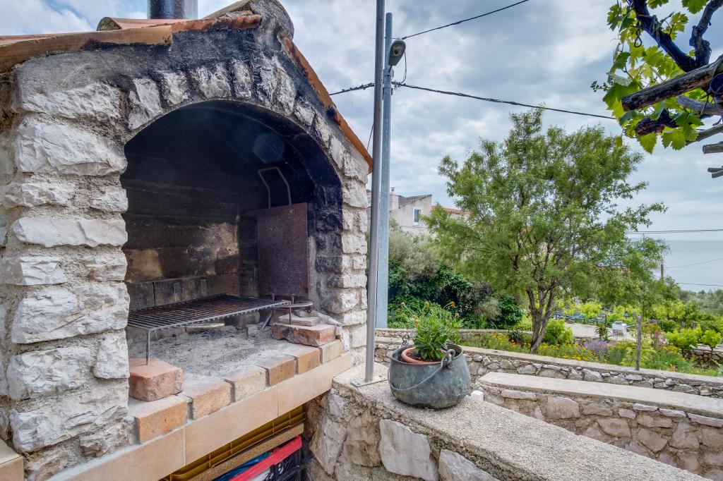 Originale maison insulaire en pierre **** (86 m2), rénovée, meublée avec des meubles faits main, idéale pour des vacances en famille mais aussi pour des vacances romantiques à deux. La maison se compose de 3 étages : Rez-de-chaussée (cuisine entièrement équipée avec lave-vaisselle, grand réfrigérateur avec congélateur, machine à café Nespresso et filtre, four et chauffage au sol, salle de bain avec lave-linge et chauffage au sol et salon avec SMART SAT TV), premier étage (2 chambres, une avec un lit double et l'autre avec deux lits simples) et grenier - terrasse sur le toit avec une belle vue sur la mer, une chambre double avec air conditionné et une salle de bain. Toutes les chambres ont une vue sur la mer. Un jardin avec barbecue et une oliveraie avec transats donnant sur la mer sont à votre disposition. Un parking privé pour 2 voitures se trouve à 50 m de la maison et se situe en bord de route. Une très belle plage de galets se trouve à seulement 80 m de la maison. Internet WiFi est disponible gratuitement dans toutes les chambres, y compris sur le toit-terrasse.