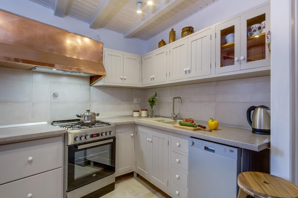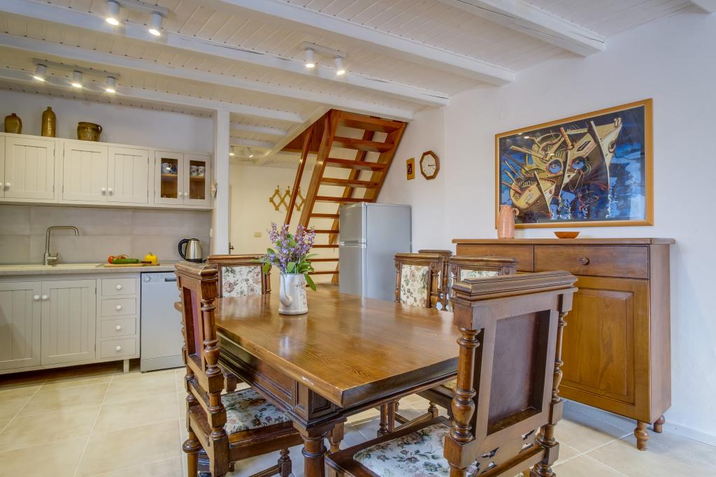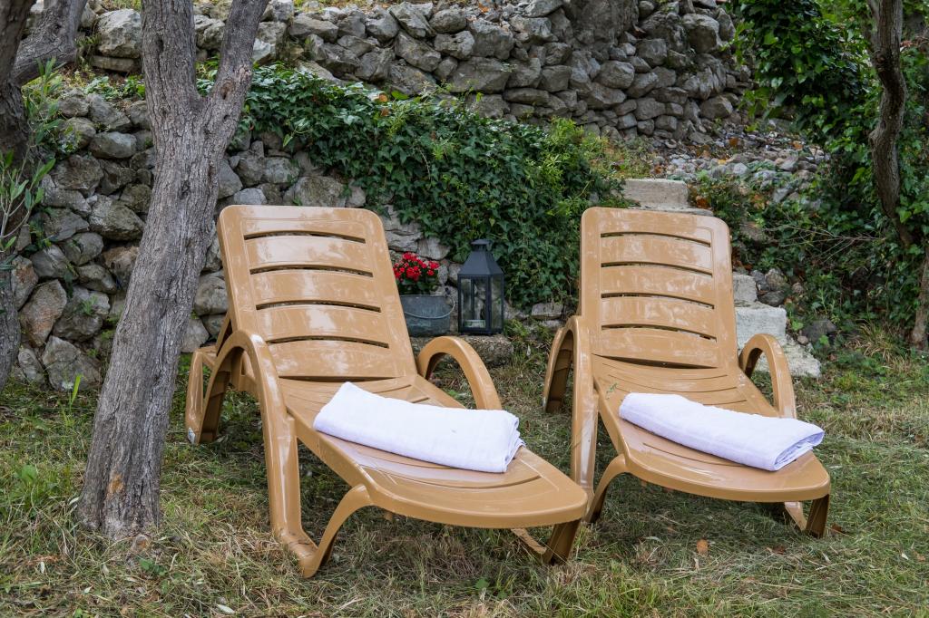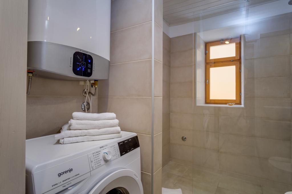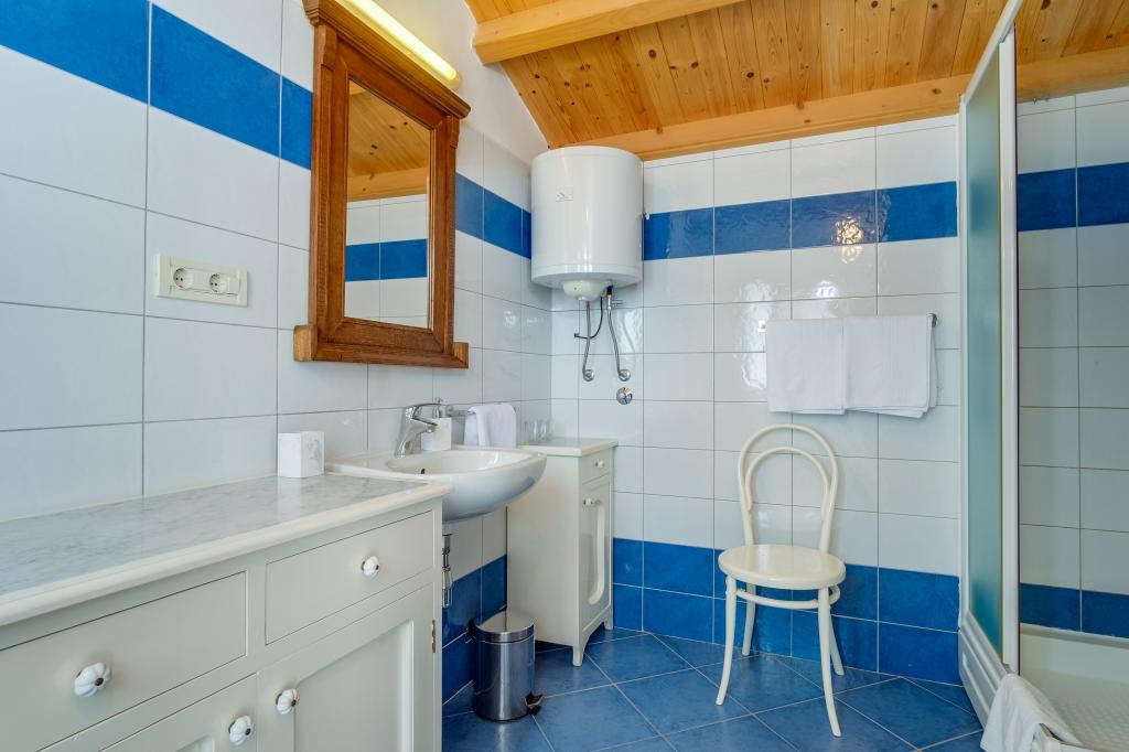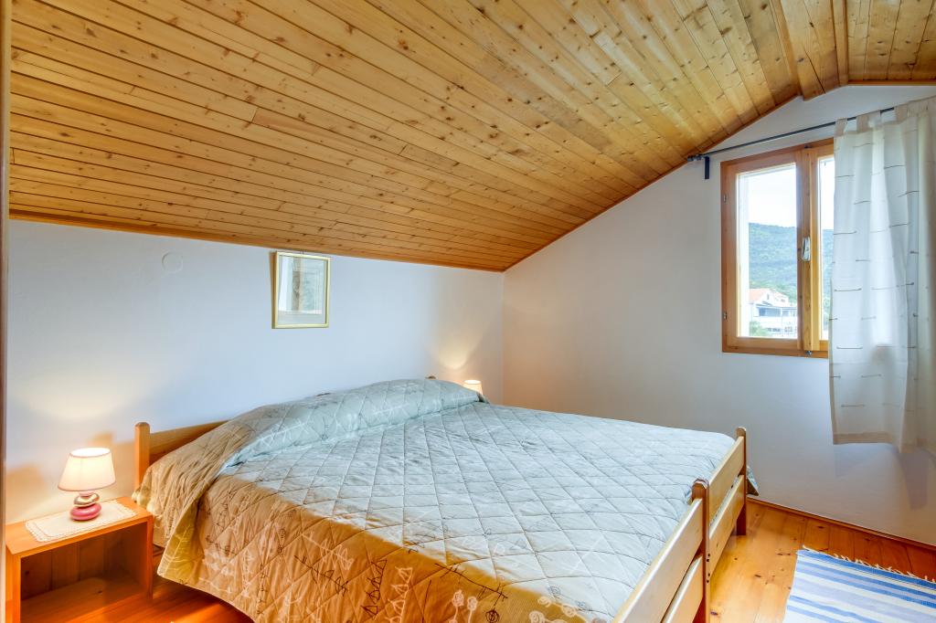 Originale maison insulaire en pierre **** (86 m2), rénovée, meublée avec des meubles faits main, idéale pour des vacances en famille mais aussi pour des vacances romantiques à deux. La maison se compose de 3 étages : Rez-de-chaussée (cuisine entièrement équipée avec lave-vaisselle, grand réfrigérateur avec congélateur, machine à café Nespresso et filtre, four et chauffage au sol, salle de bain avec lave-linge et chauffage au sol et salon avec SMART SAT TV), premier étage (2 chambres, une avec un lit double et l'autre avec deux lits simples) et grenier - terrasse sur le toit avec une belle vue sur la mer, une chambre double avec air conditionné et une salle de bain. Toutes les chambres ont une vue sur la mer. Un jardin avec barbecue et une oliveraie avec transats donnant sur la mer sont à votre disposition. Un parking privé pour 2 voitures se trouve à 50 m de la maison et se situe en bord de route. Une très belle plage de galets se trouve à seulement 80 m de la maison. Internet WiFi est disponible gratuitement dans toutes les chambres, y compris sur le toit-terrasse.