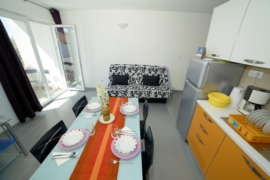 Maison avec 4 appartements neufs avec vue sur la mer et lîle de Brac dans un petit village tranquille Marusici qui est lune des plus belles plages de lAdriatique Orient. Les appartements sont parfaits pour les familles avec enfants et offrent un confort complet (climatisation, flat rate internet et télévision par satellite). Chaque appartement dispose dun mobilier moderne et dispose dune chambre, salle de bains luxueusement décorées et une cuisine, salle à manger et salon dans une zone où il ya un canapé qui se transforme en un lit pour deux personnes.